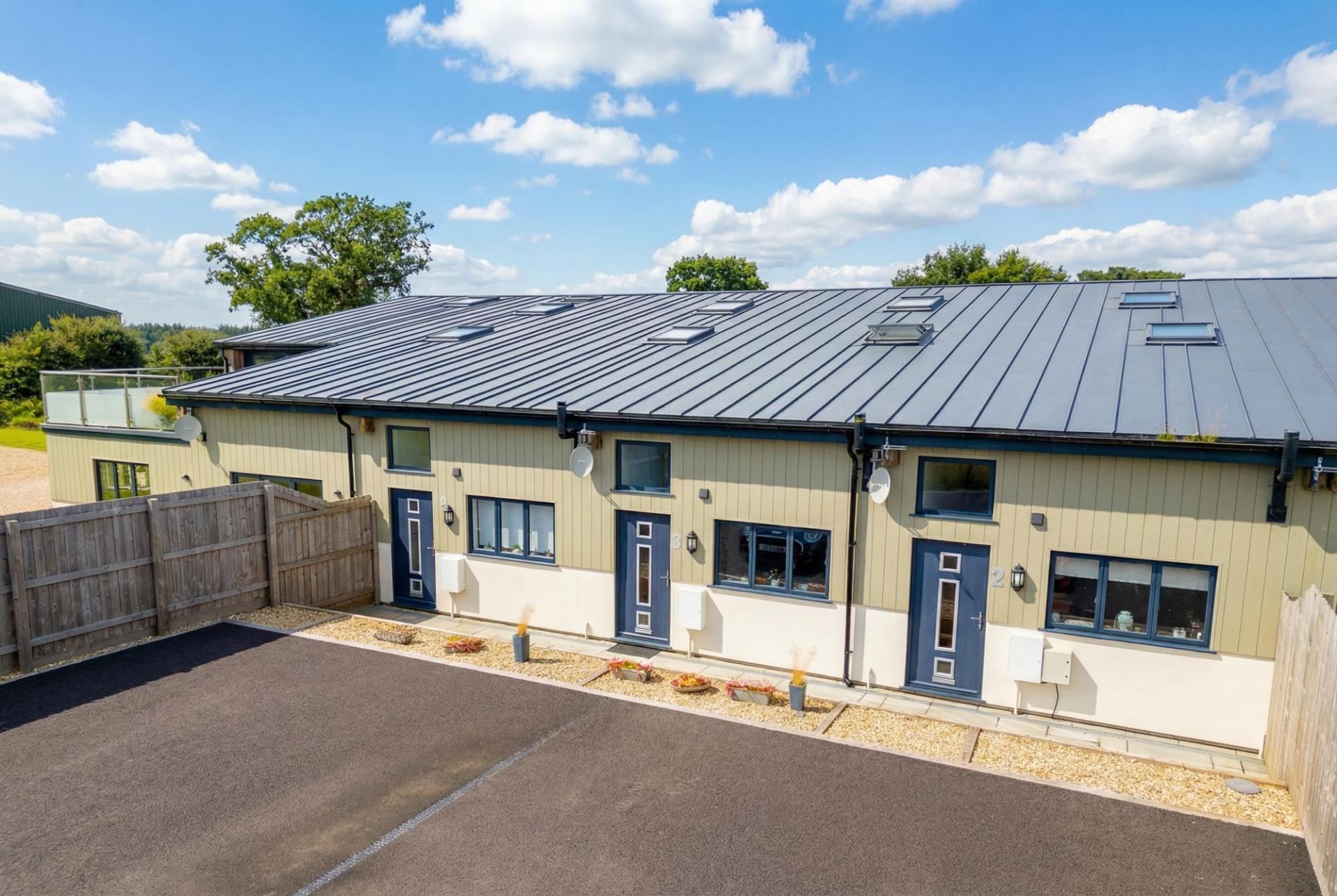 This substantial contemporary barn conversion is set in rural mid Devon. It boasts 1368 square feet of accommodation and is surrounded by countryside and picturesque farmland. Although rural, the city of Exeter and the towns of Crediton, Tiverton, and Okehampton are easily accessible. The property is finished to a high standard and has a light, bright living room. Set in a small hamlet less than 2 miles to the North of Morchard Bishop which has a pub, village store, primary school, Church & a thriving community.