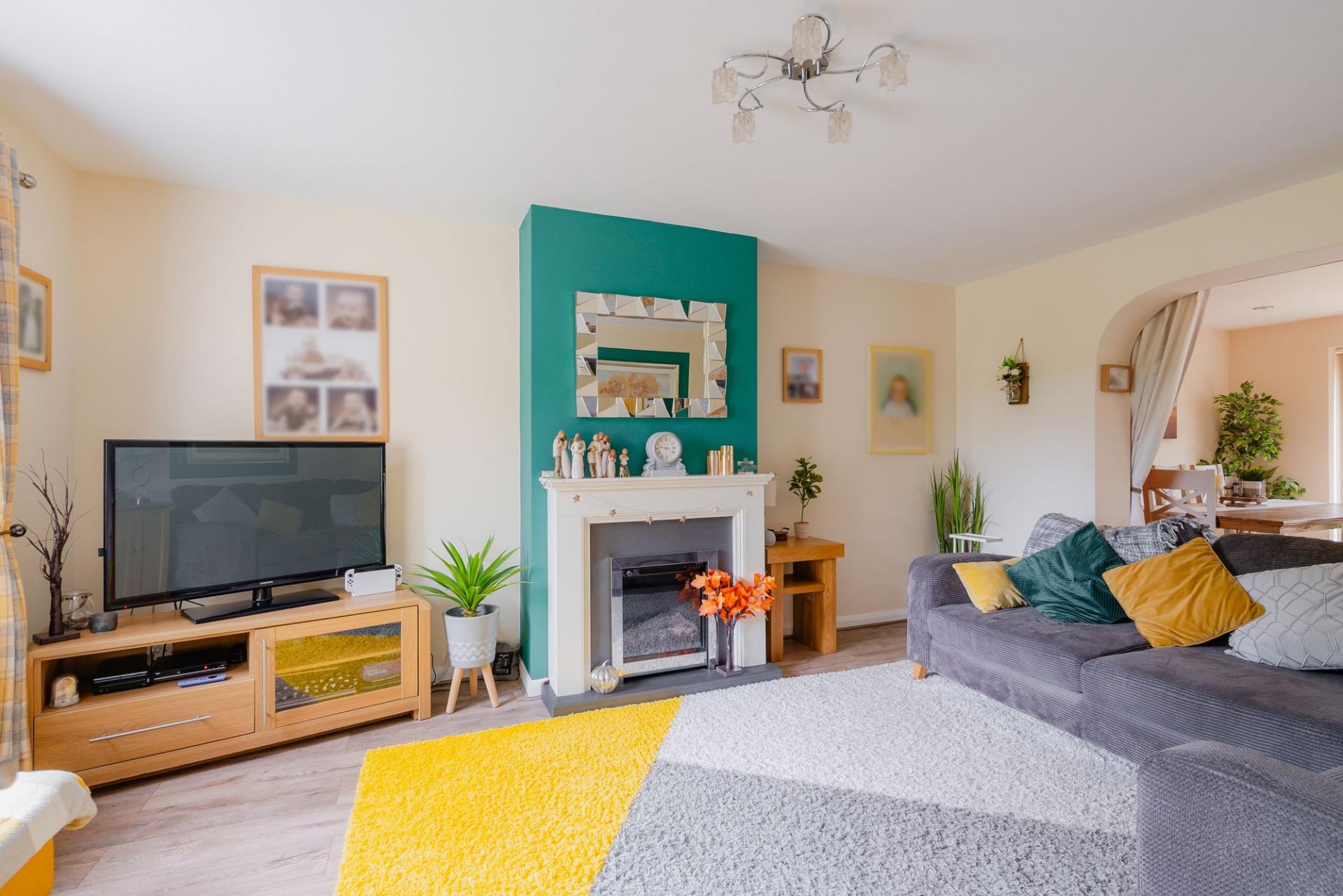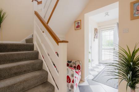 The entrance hall has a large storage area and a downstairs WC. The kitchen has an open plan design into the dining area. The units are a white gloss and include an integrated fridge/freezer, there is an eye level double oven and induction hob with modern feature extractor above. The dining area has an ingenious storage design with fitted units with space for a washer & dryer, dishwasher and storage - a whole utility area tucked away in this space saving area. The dining area is spacious with plenty of room for a large table and further seating. There is a door out to the garden from this modern extension. The main lounge is to the front of the house joined through an arch from the dining area with an attractive electric fireplace and views to the front through the large picture window.
