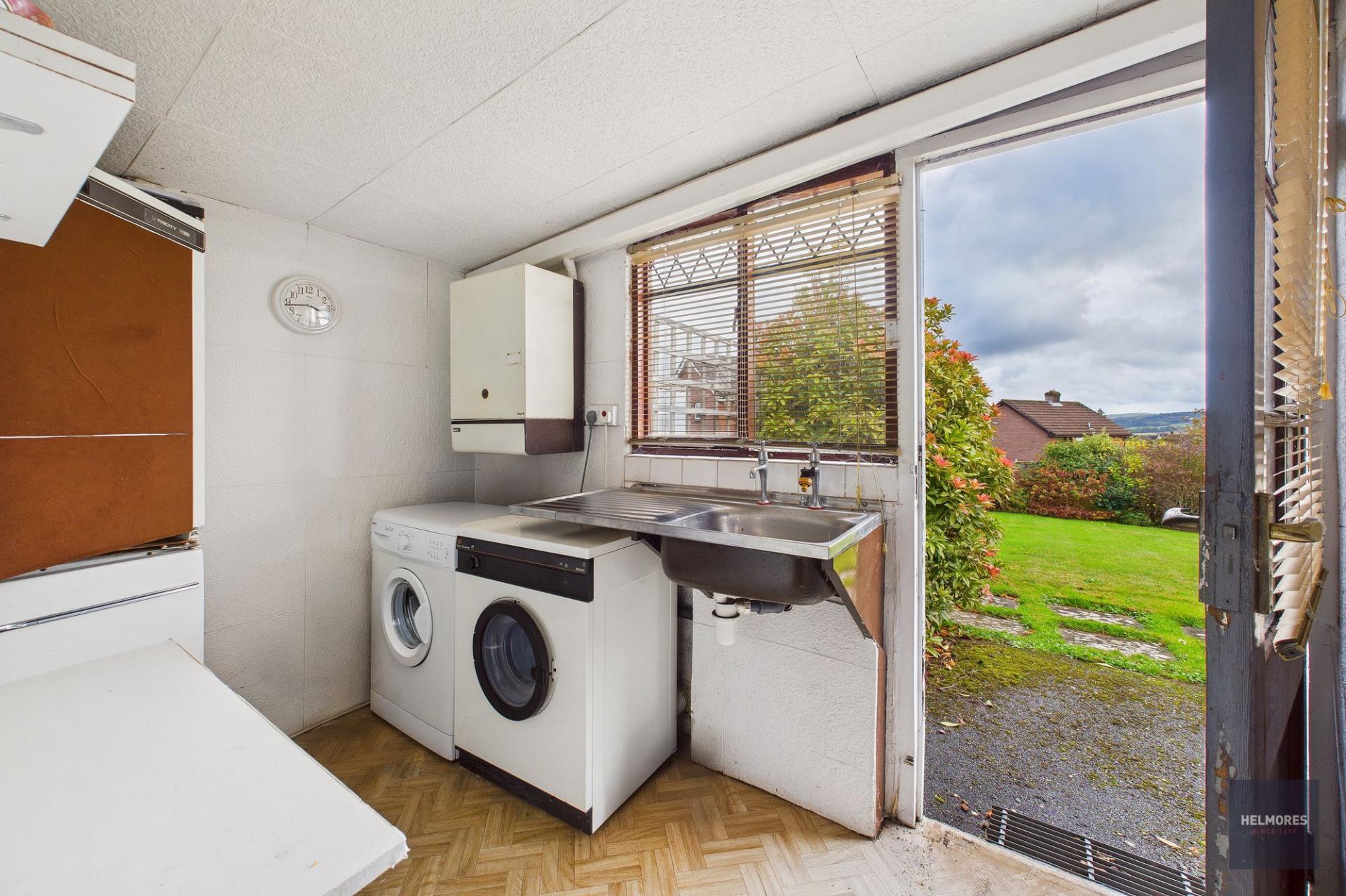 Outside to the front is a gated entrance with a garden laid to lawn and a parking space in front of the garage. The garage has power and light and the rear leads through to the utility room with plenty of space for washing machine and dryer along with extra storage. A door leads from here out to the rear garden. The rear garden is mainly laid to lawn with flower and shrub borders and those wonderful far reaching views.