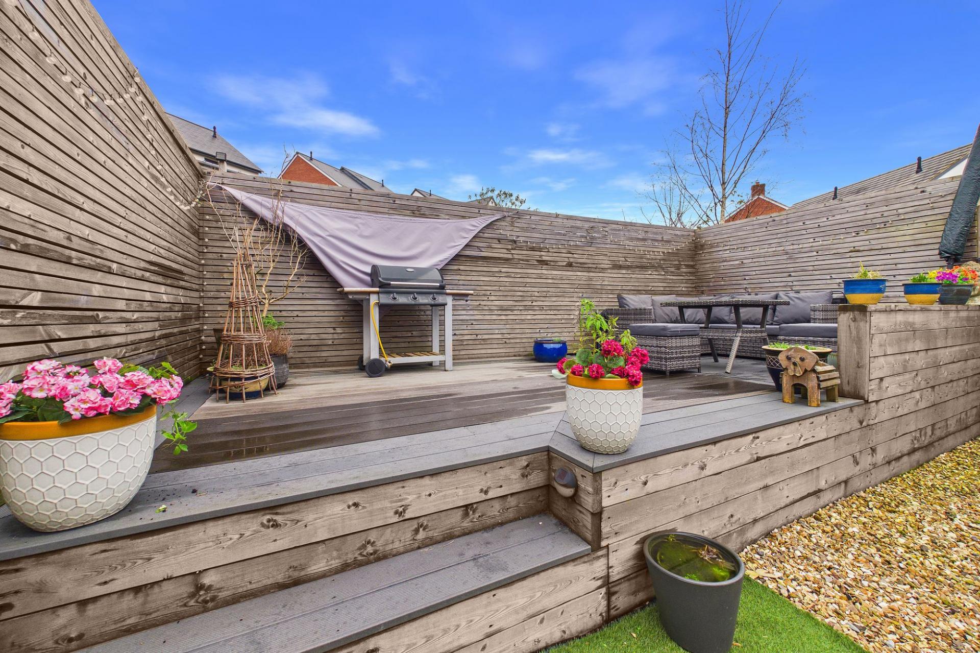 - Landscaped rear garden with defined seating areas