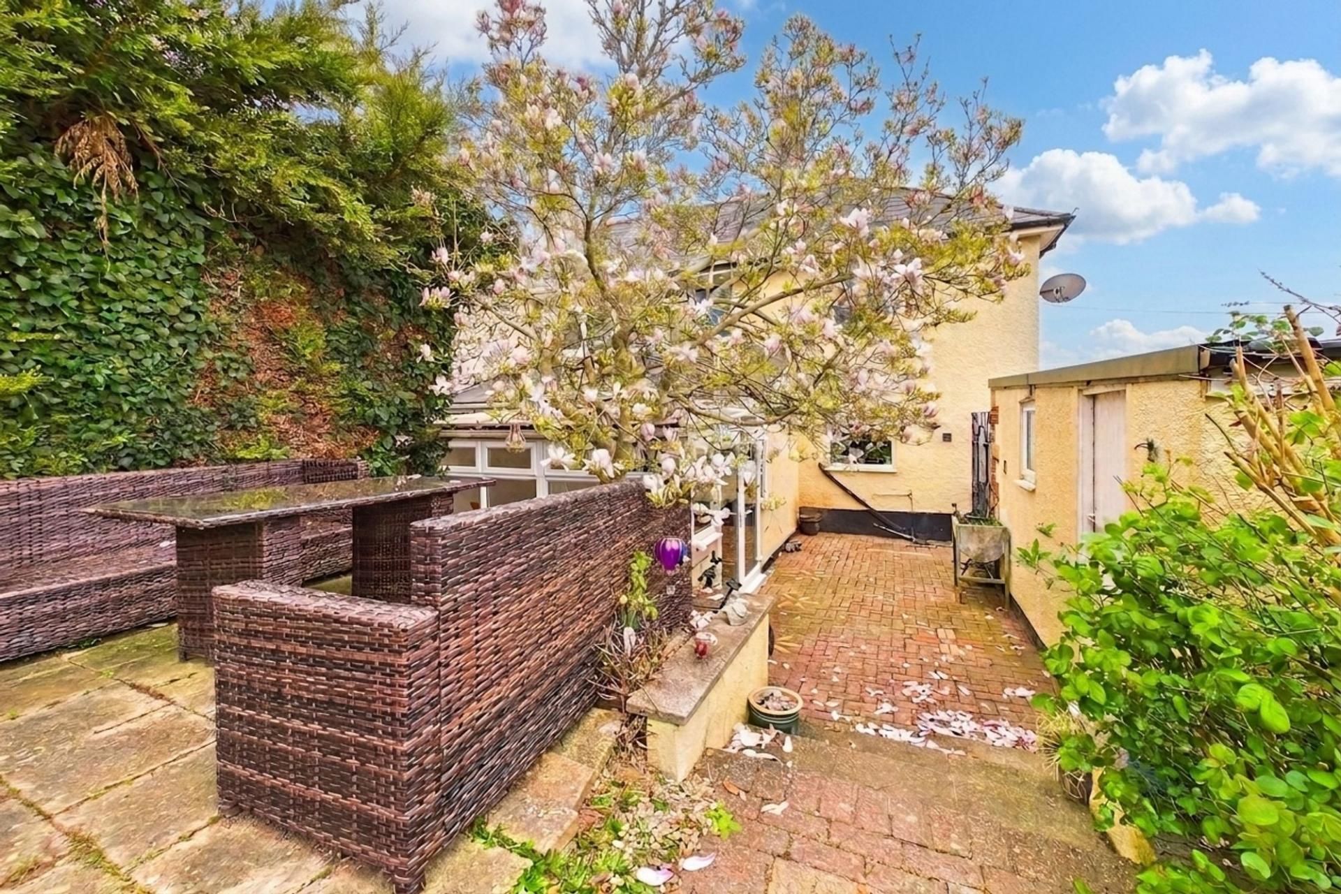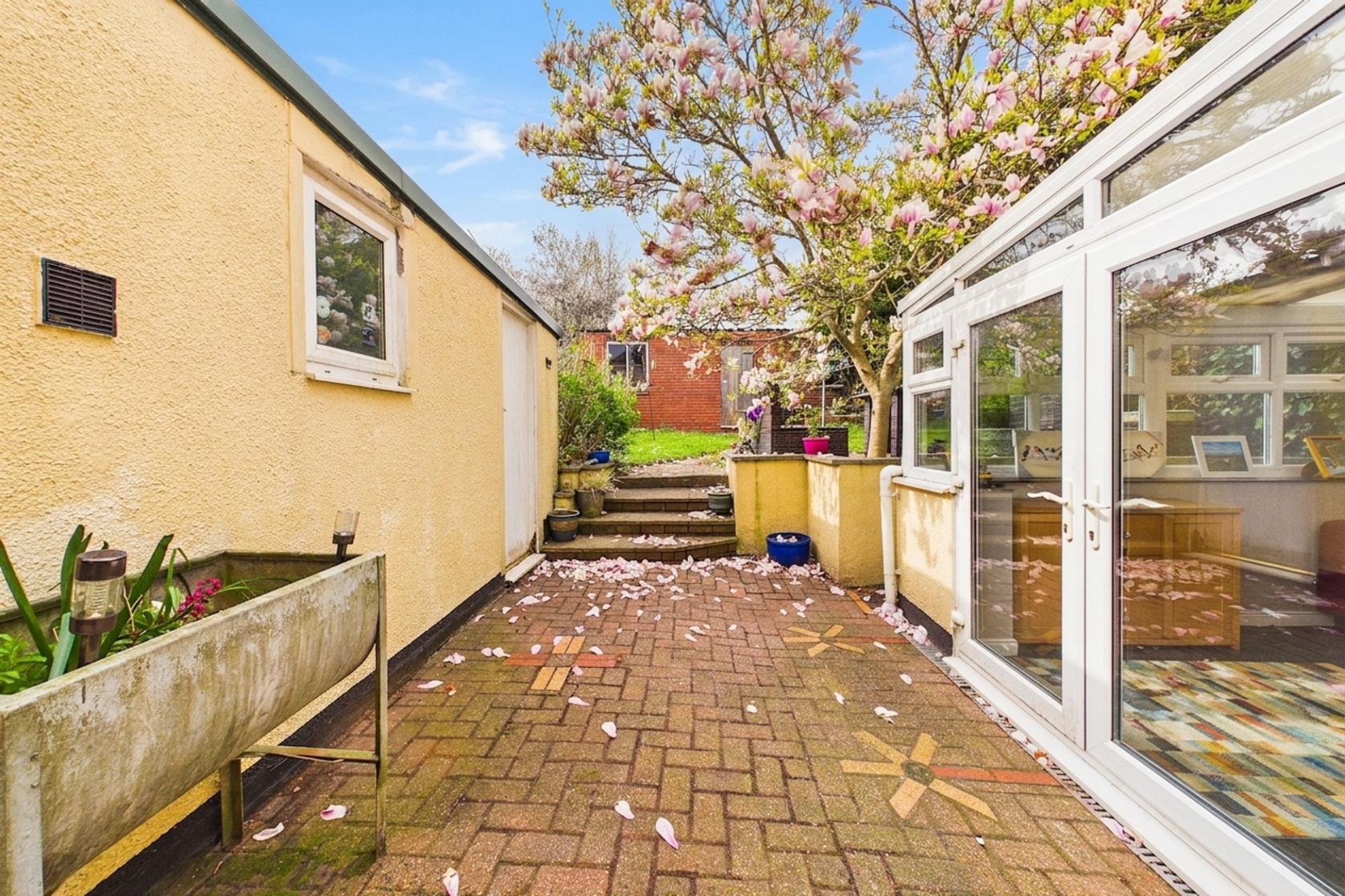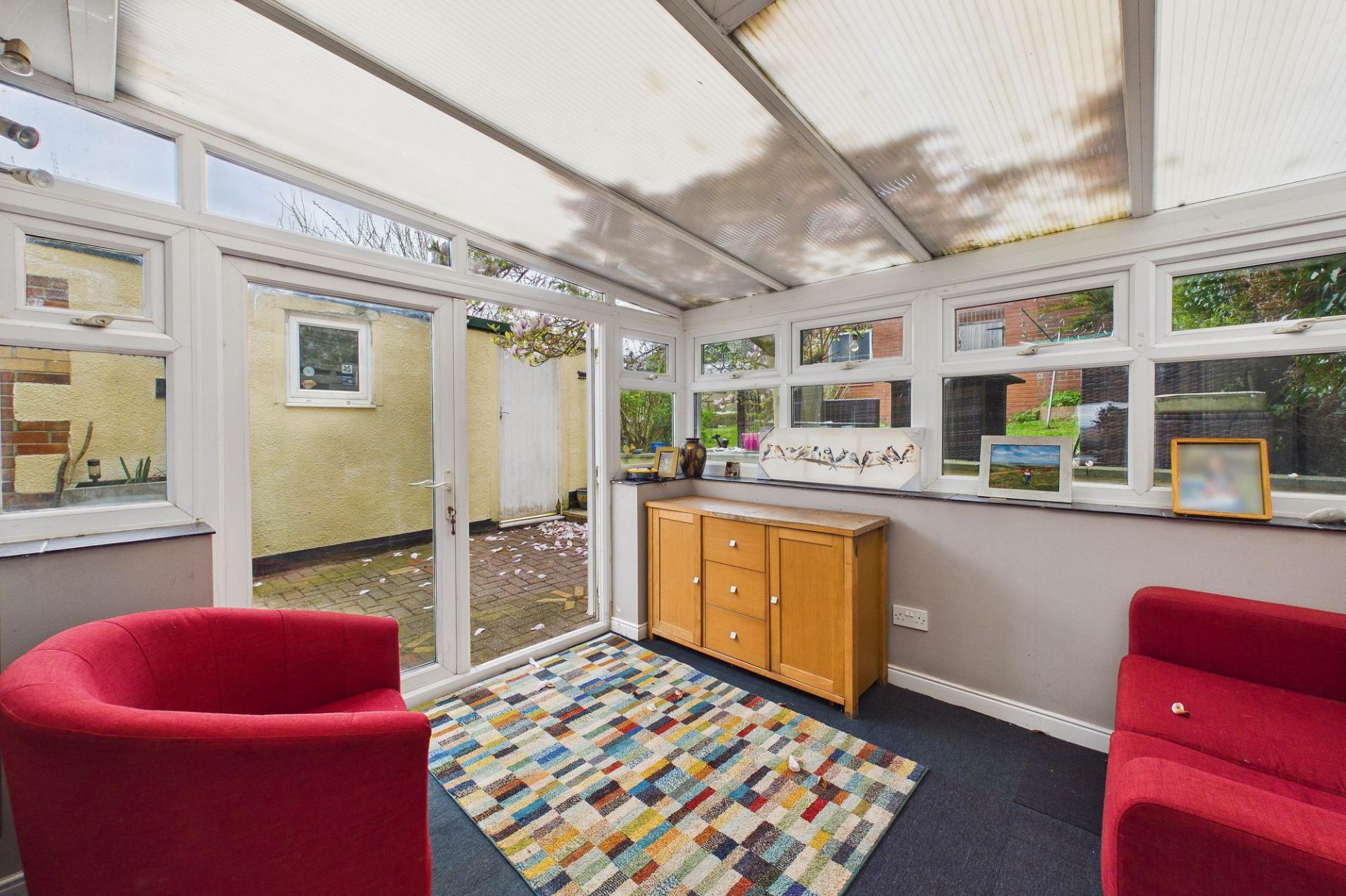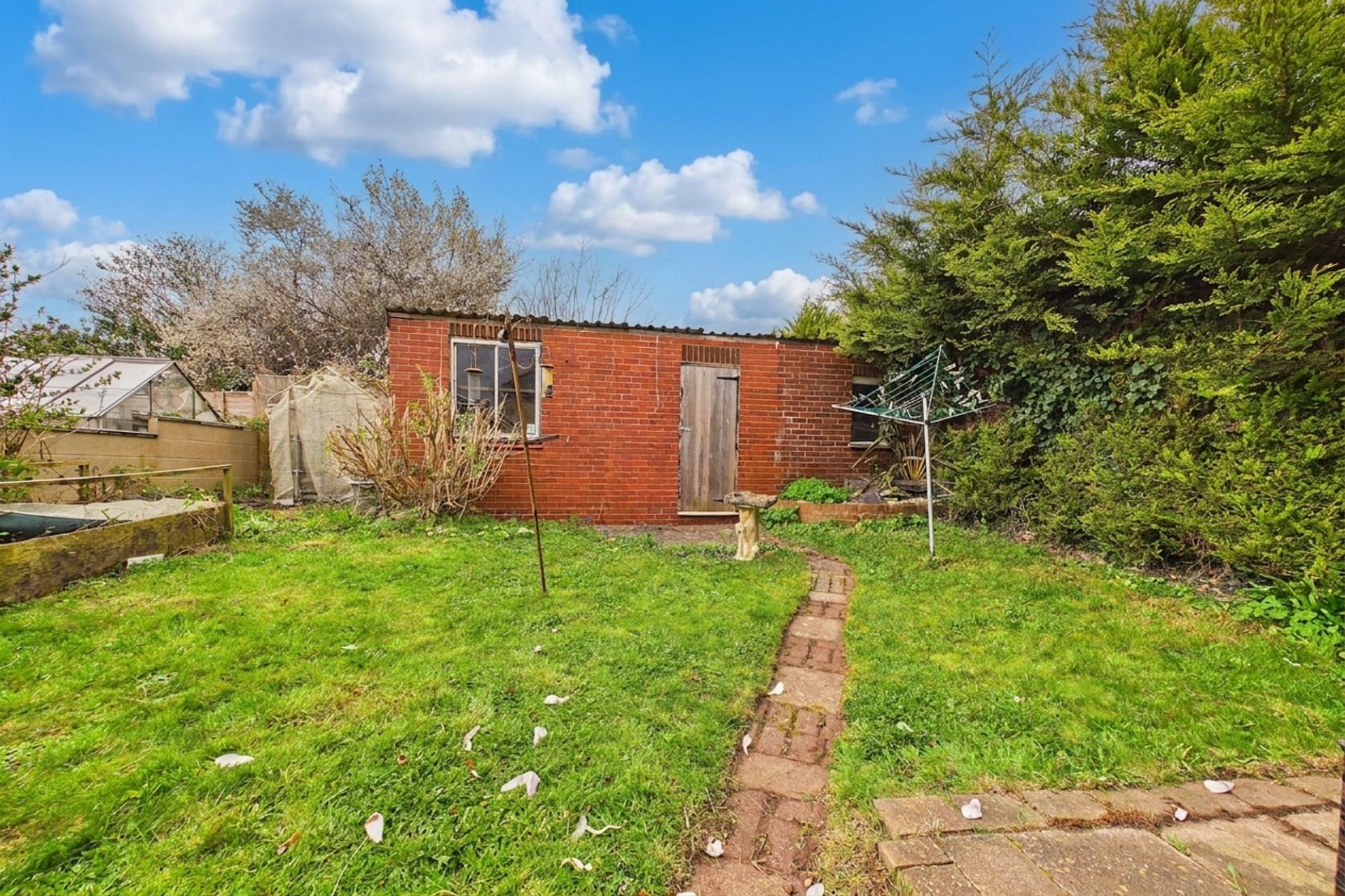 - Conservatory to rear and brick garden store with potential