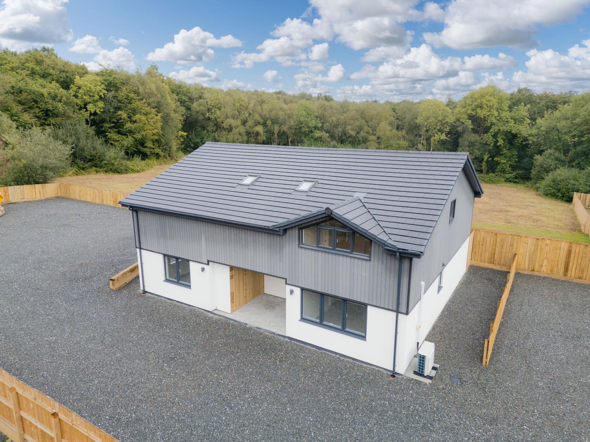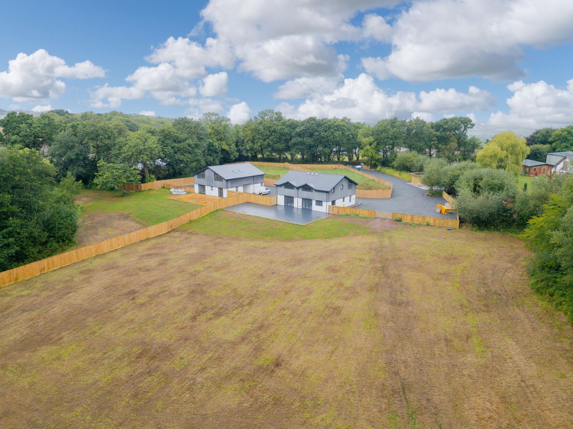 The houses are nearing completion and are timber framed with airsource heat pumps and will be finished to a high standard. There are several factors that make these stand out. First off, they’re a really good size. Over 2500sqft with 5 bedrooms, 3 bathrooms and wonderful open plan kitchen/family rooms. There’s also a separate living room, (Possible 6th bedroom), study and utility, giving them a broad appeal. Then there’s the location being amongst the rolling hills yet not isolated. But the biggest point is the land. Each house will have a total of 5 acres! Split into gardens, paddocks and woodland, each house will definitely have that feeling of space and room to enjoy the outdoors. The gardens are generous, the paddocks will be about an acre each with the rest made up of deciduous woodland.