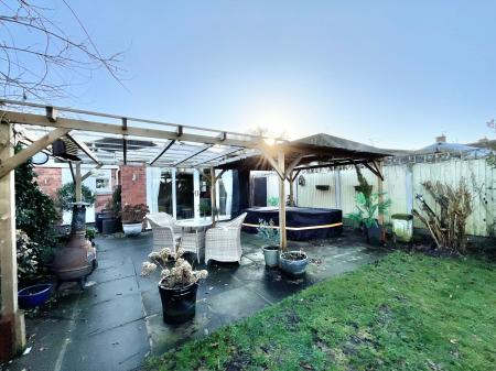 - Generous garden with patio, pergola, multiple seating areas, plus double garage and ample driveway parking