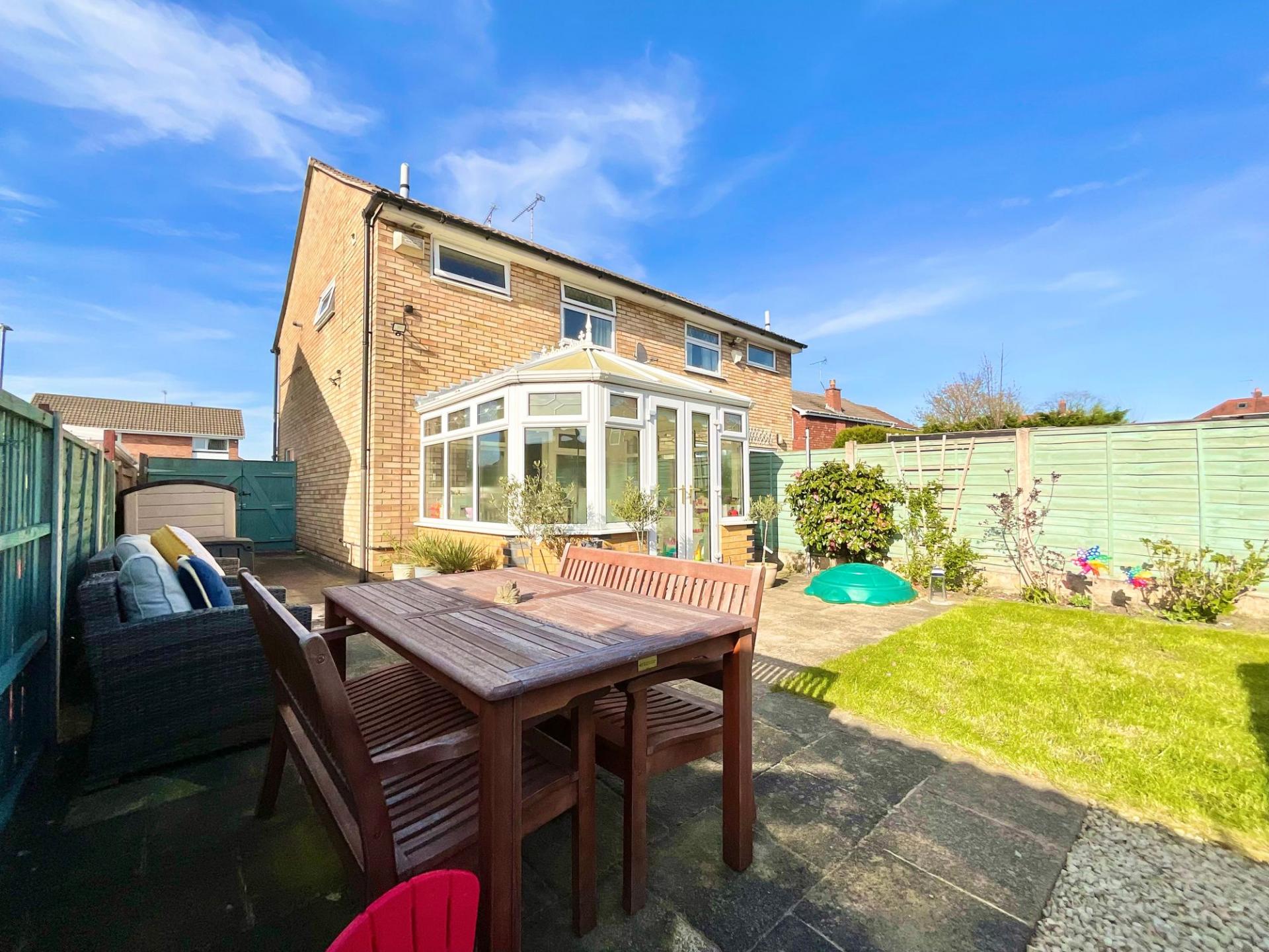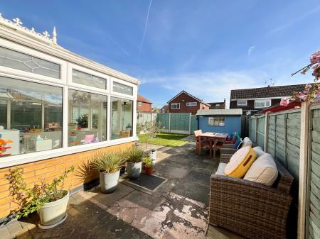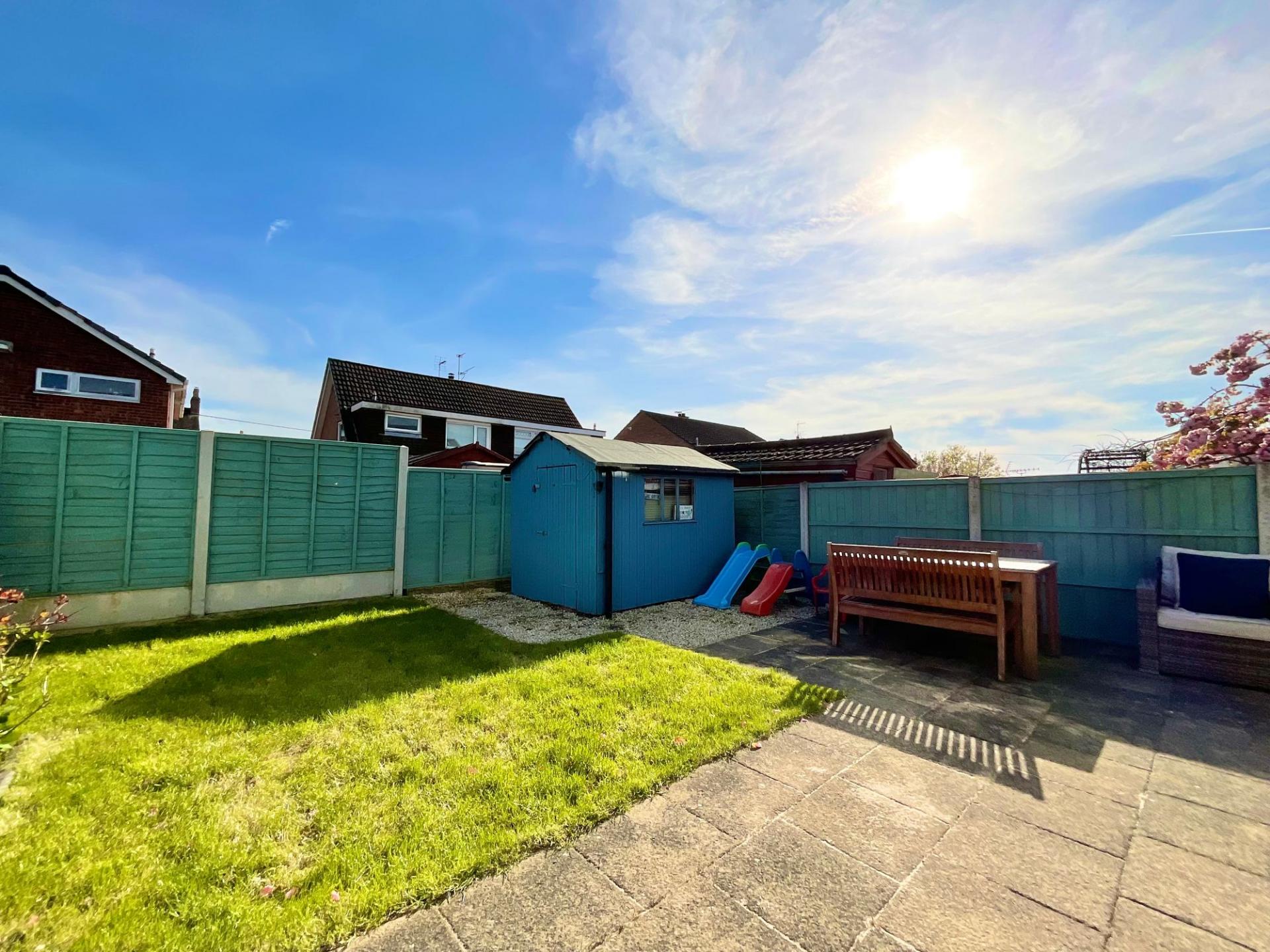 - Enclosed rear garden with lawn, patio seating area, and a shed with electricity ideal for storage or a workshop.