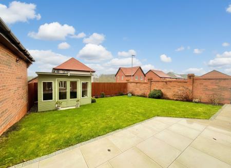 - Beautiful garden with summer house, garage, and large driveway providing ample parking.