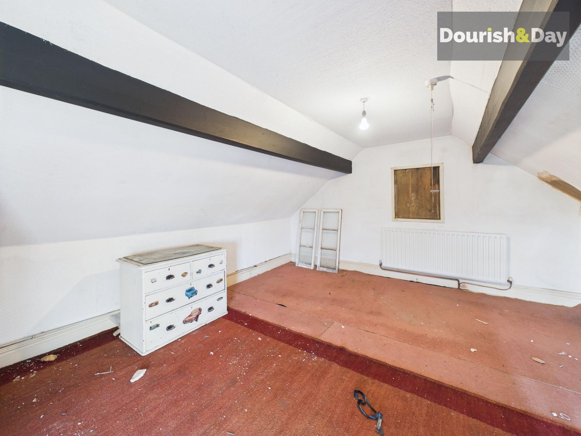 Inside, the home opens with a charming entrance hallway featuring original Minton tiled flooring. The front living room is bright and welcoming, while the separate dining room provides an ideal space for entertaining. The kitchen opens into a rear workshop, which features a traditional well with a hand pump, offering additional space and versatility. Upstairs, a galleried landing gives access to three double bedrooms—one with an original fireplace—and a wet room. A fourth double bedroom occupies the second floor, perfect for guests, a home office or creative space. A large cellar offers valuable storage and potential for further use.