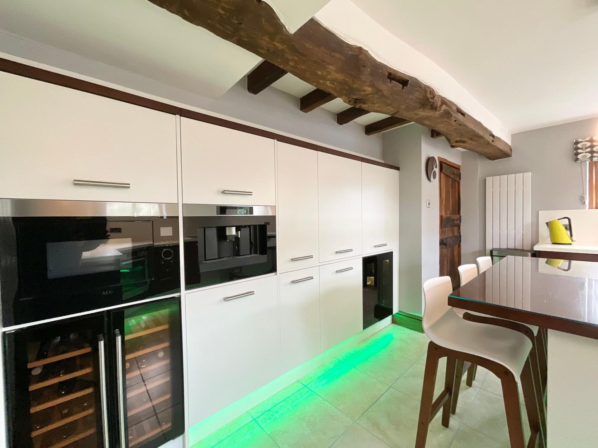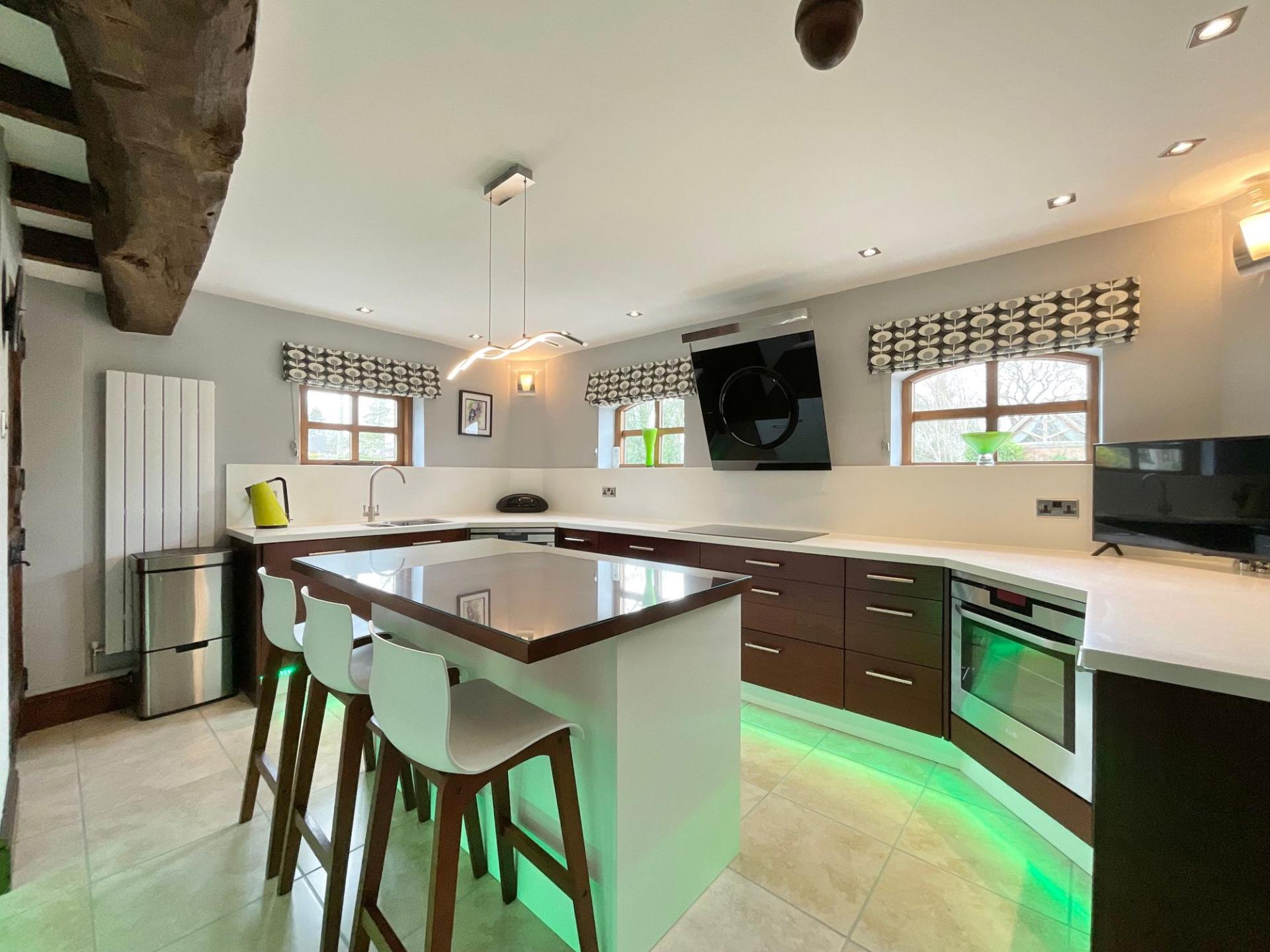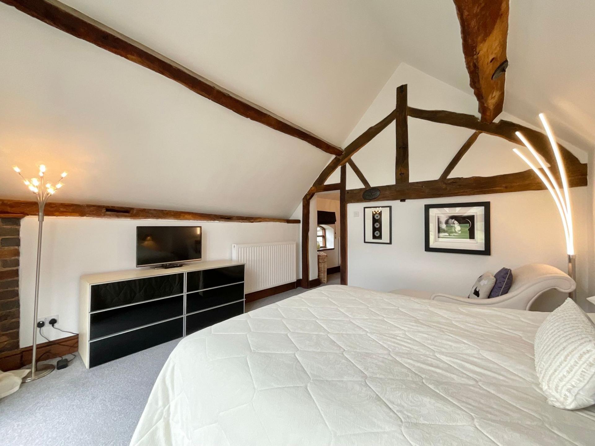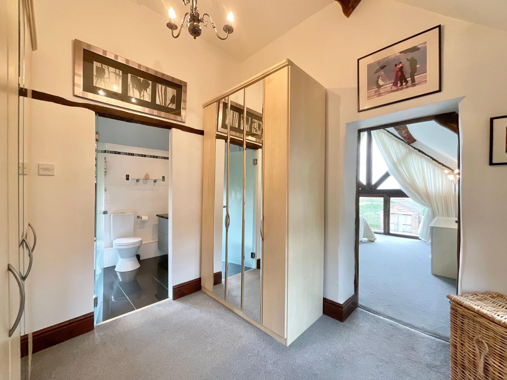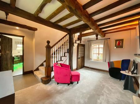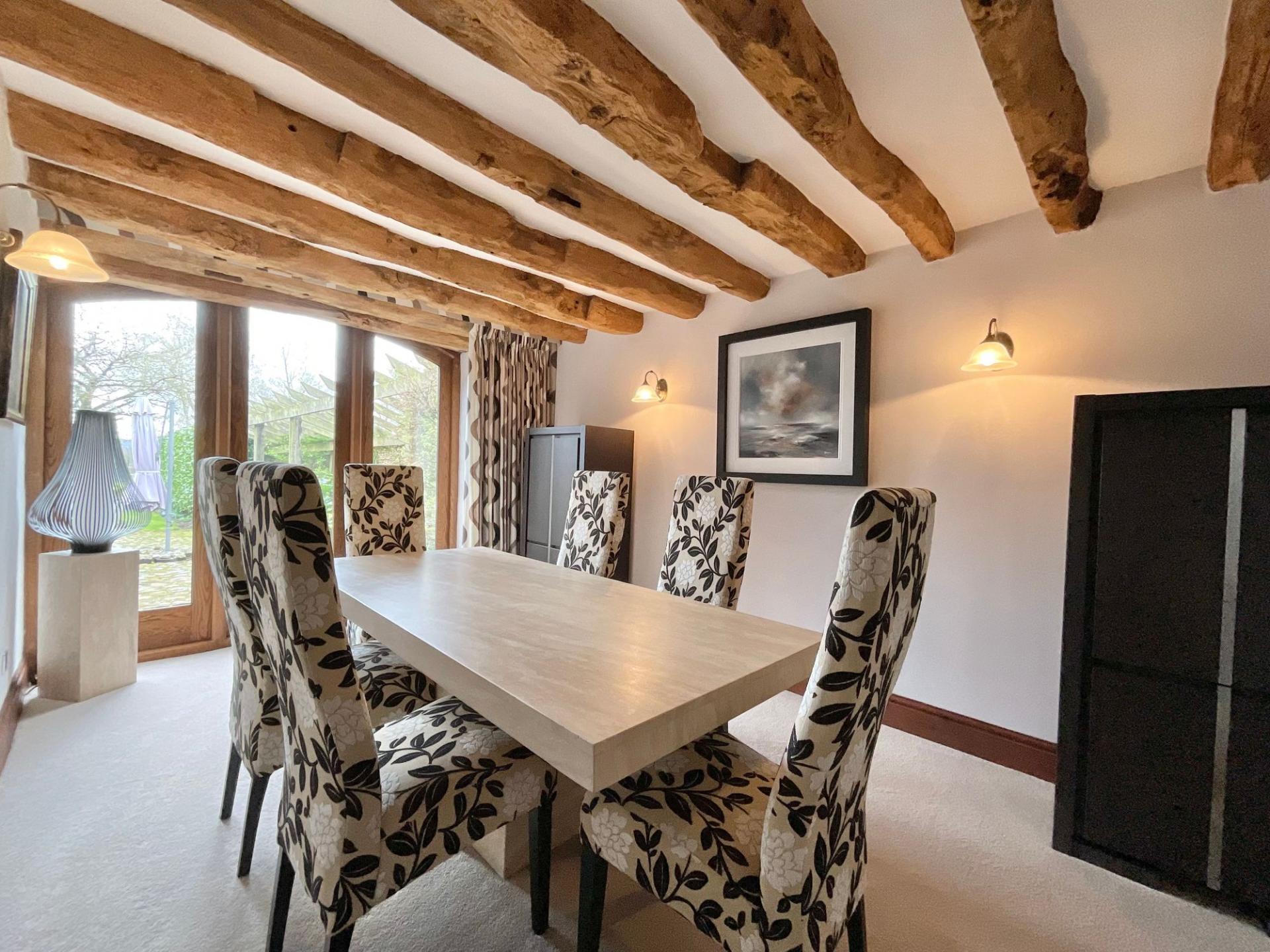 - A characterful barn conversion dating to 1863, featuring original elm doors, oak windows, and striking exposed structural beams throughout.