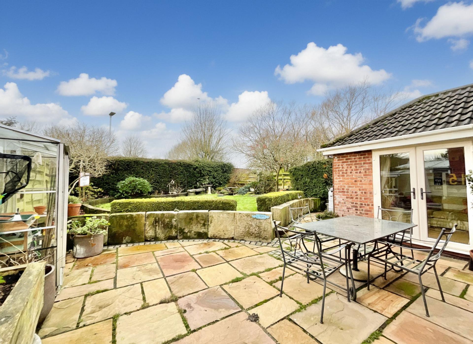 - Private south-west facing garden with patio, pond, and lawn, not overlooked