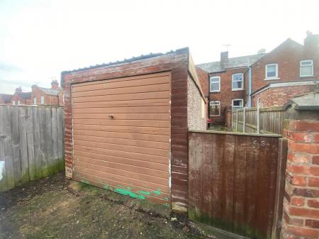Detached single garage with up and over door to the front, courtesy door to the rear.