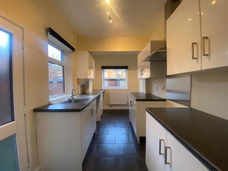 Spacious kitchen with uPvc double glazed panelled windows to both the side and rear elevations, uPvc double glazed panelled door leading out to the rear garden, double panelled radiator. The kitchen is fitted with a range of wall, base, and drawer units with granite effect roll top work surfaces over incorporating a stainless steel single drainer sink unit with mixer tap, spaces for white goods, space for electric cooker with stainless steel hob and stainless steel splash back, wall mounted central heating boiler, Tiled flooring throughout.