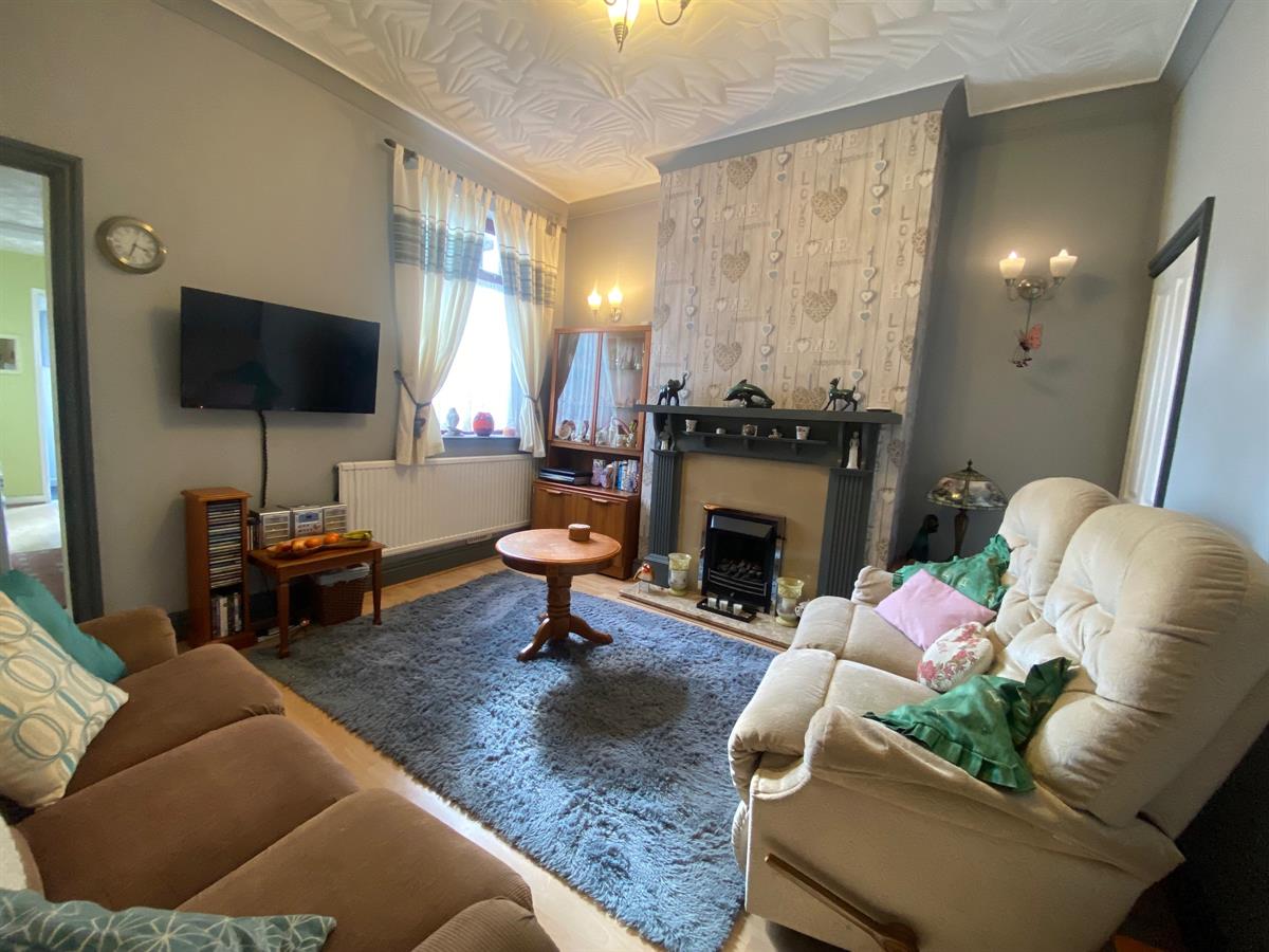 A second good sized reception room with feature fireplace having marble slips and hearth with wooden surround and housing a coal effect, gas fire. Laminate flooring continued through from the reception hall, uPvc double glazed window to rear elevation. Understairs storage cupboard and radiator. Coving to ceiling. Painted, panelled door through to: