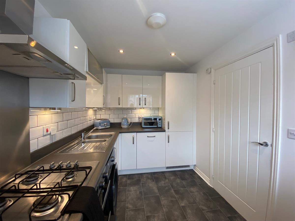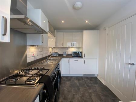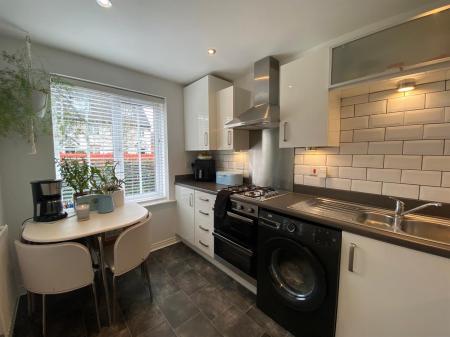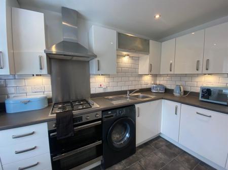 Having uPvc double glazed Georgian bar window to the front elevation, single radiator, inset spot lighting. The kitchen is fitted with a range of wall, base and drawer units with granite effect roll top work surfaces over incorporating a one and a half bowl stainless steel single drainer sink unit with mixer tap, built in four ring gas hob with extractor hood over and electric double oven below, integrated fridge, integrated freezer, integrated dishwasher, space and plumbing for a washer, space for table and chairs, wall mounted central heating boiler concealed within a kitchen unit, under counter lighting.