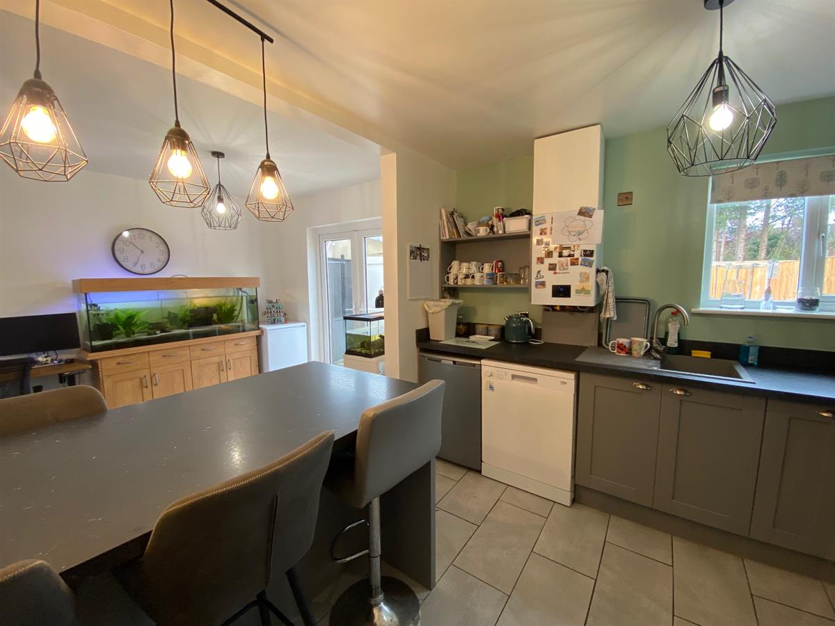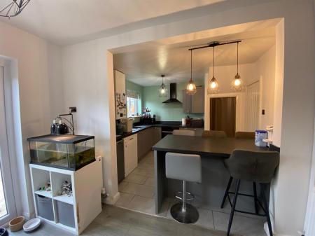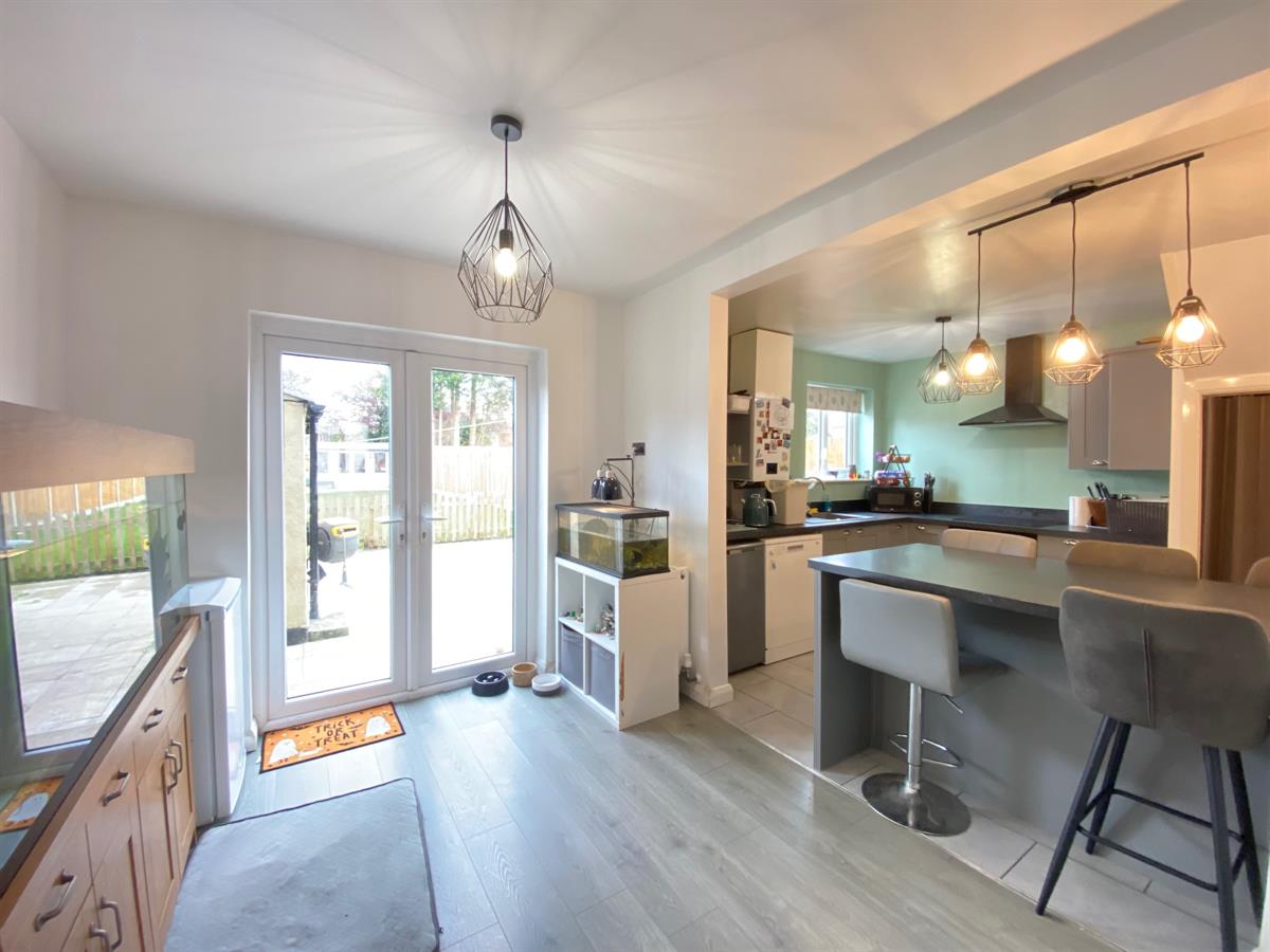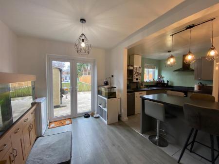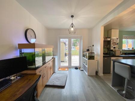 Having double glazed panelled French doors leading out to the rear garden, laminate flooring continued through from the lounge, two double panelled radiators , opening into the kitchen area.