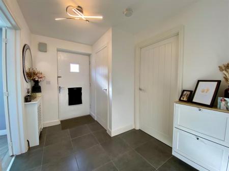 Approached over a paved pathway leading to the covered porch and double glazed frosted panelled composite entrance door leading into the reception hall.