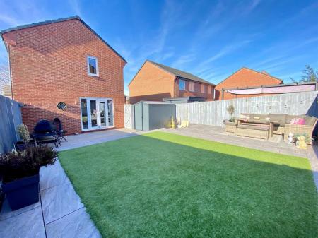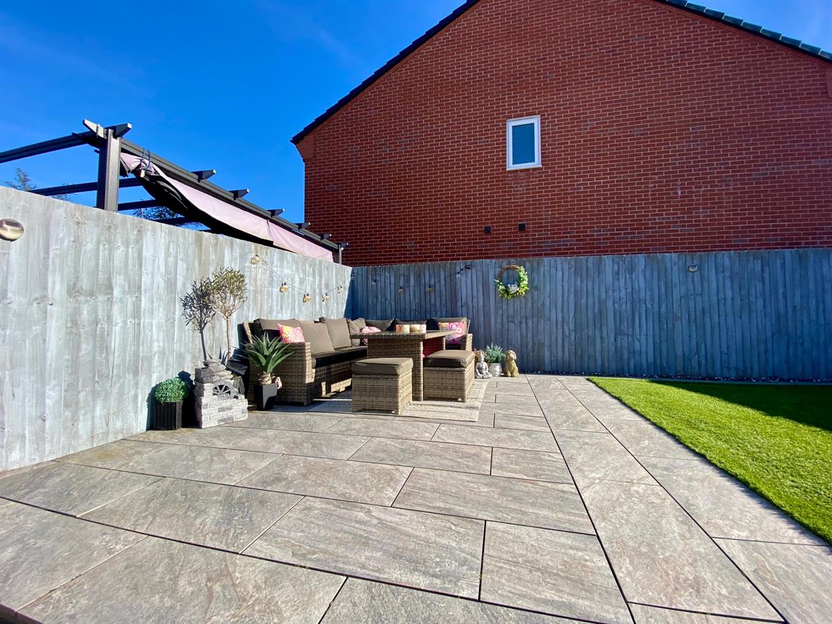 To the side of the property there is a generous enclosed garden, being mainly laid to artificial lawn with two decorative stone paved patios areas allowing ample space for garden furniture, fenced boundaries with an access gate leading to the rear, outside lighting. outside tap.