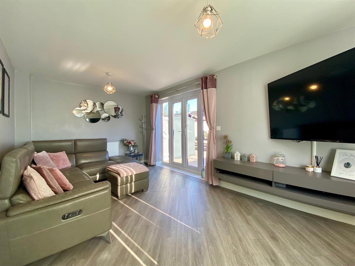 Spacious living room with uPvc double glazed panelled window to the front elevation, uPvc double glazed panelled doors and windows to the side elevation leading out to the garden, two double panelled radiators, luxury vinyl tiling flooring.