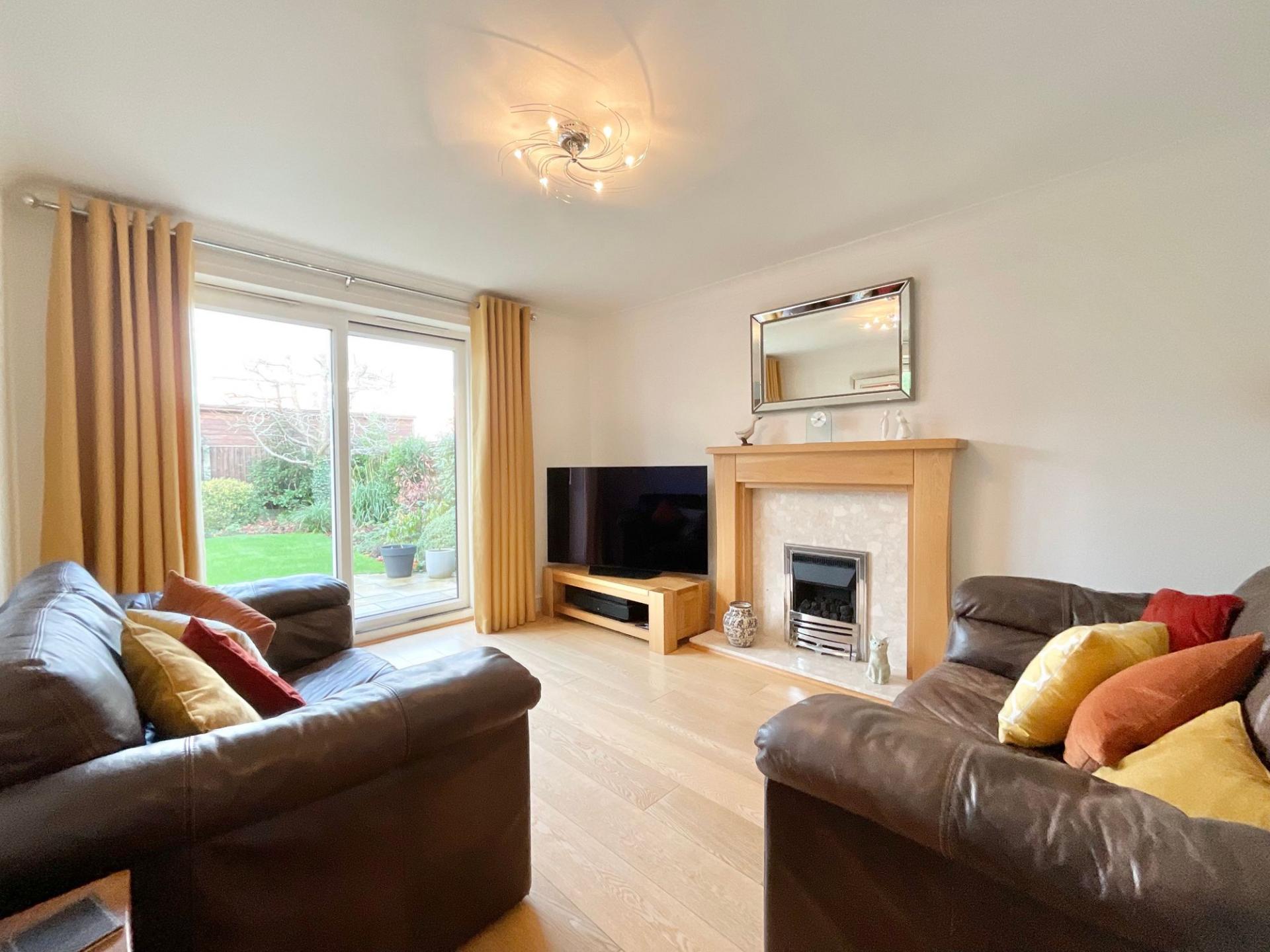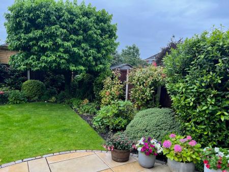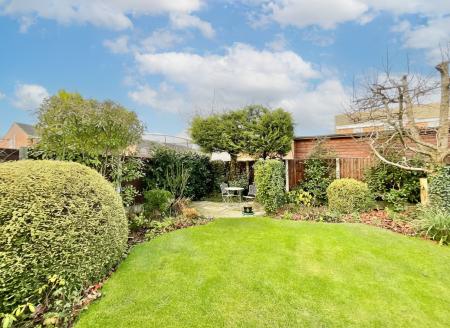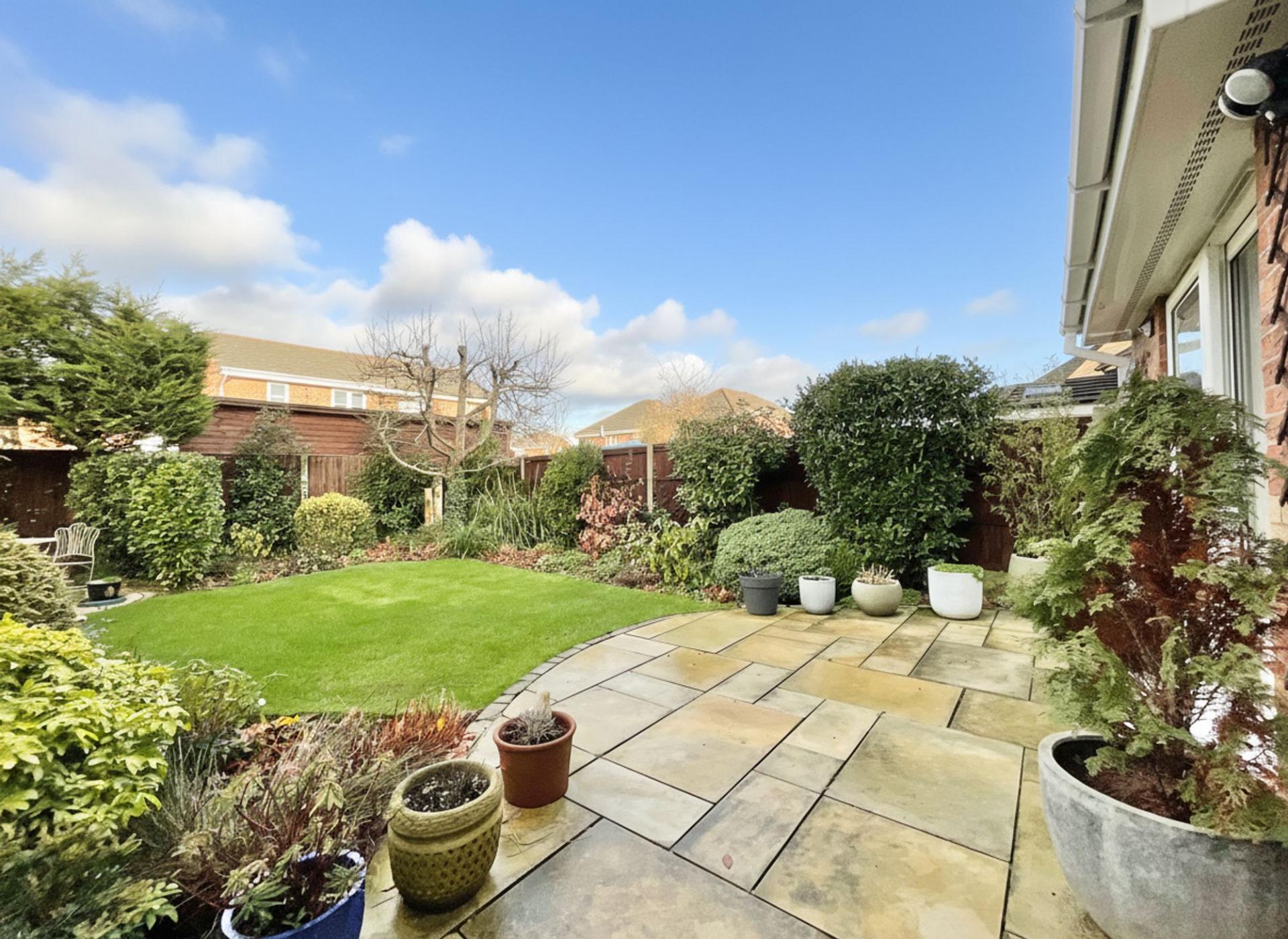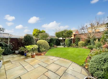 - Landscaped rear garden with patio, lawn, and mature trees and shrubs for privacy