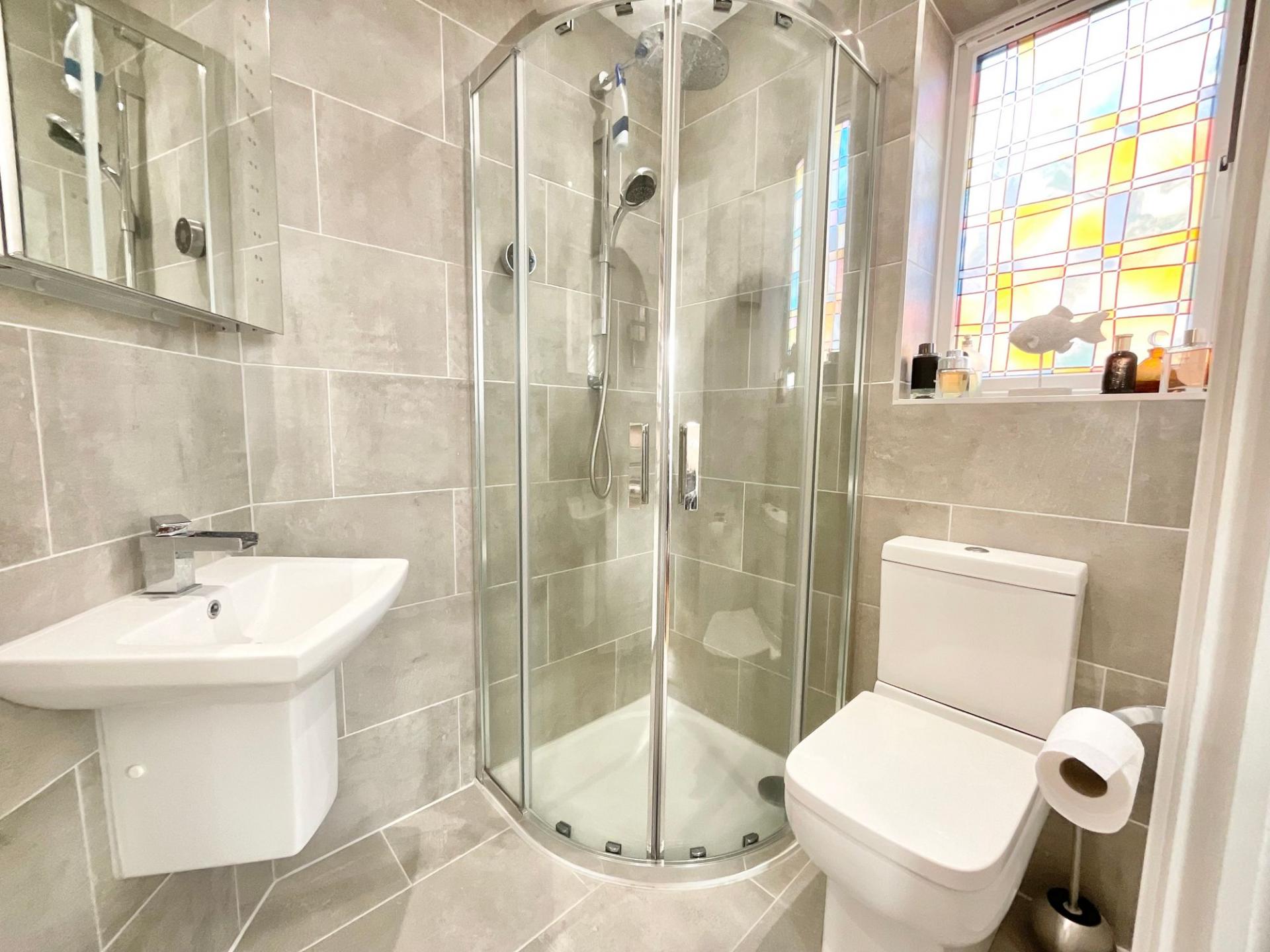 - Newly fitted contemporary bathroom alongside a modern downstairs cloakroom