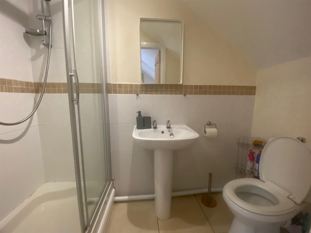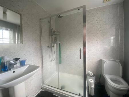 Having a three piece suite comprising of a push button low level WC, pedestal wash hand basin, walk in shower cubicle housing a mixer shower, tiled flooring.
