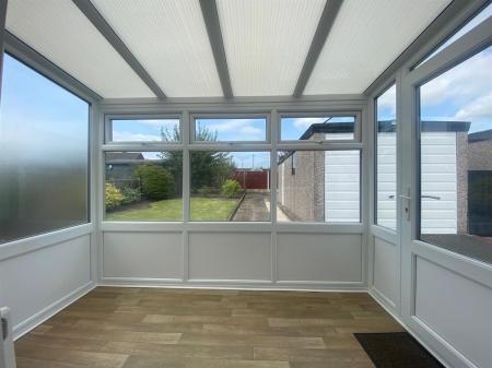 Lean-to conservatory with uPvc double glazed panelled window to the side and rear elevations, uPvc double glazed panelled door leading out to the rear garden.