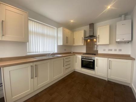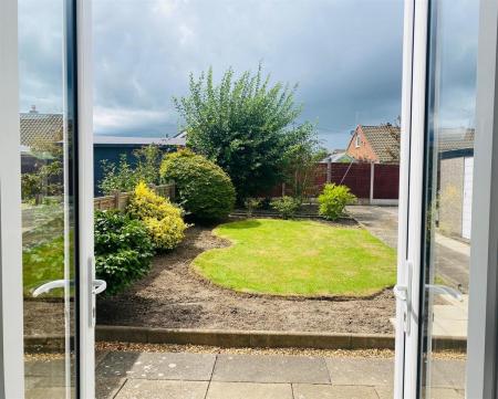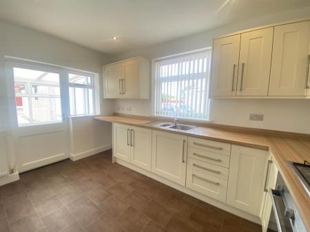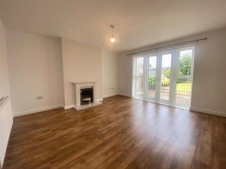 Really spacious lounge with oak effect laminate flooring throughout, two double panelled radiators, feature marble fire surround housing a contemporary electric fire, uPvc double glazed panelled double doors leading to the rear garden with uPvc double glazed panelled windows to both sides, door into the kitchen.