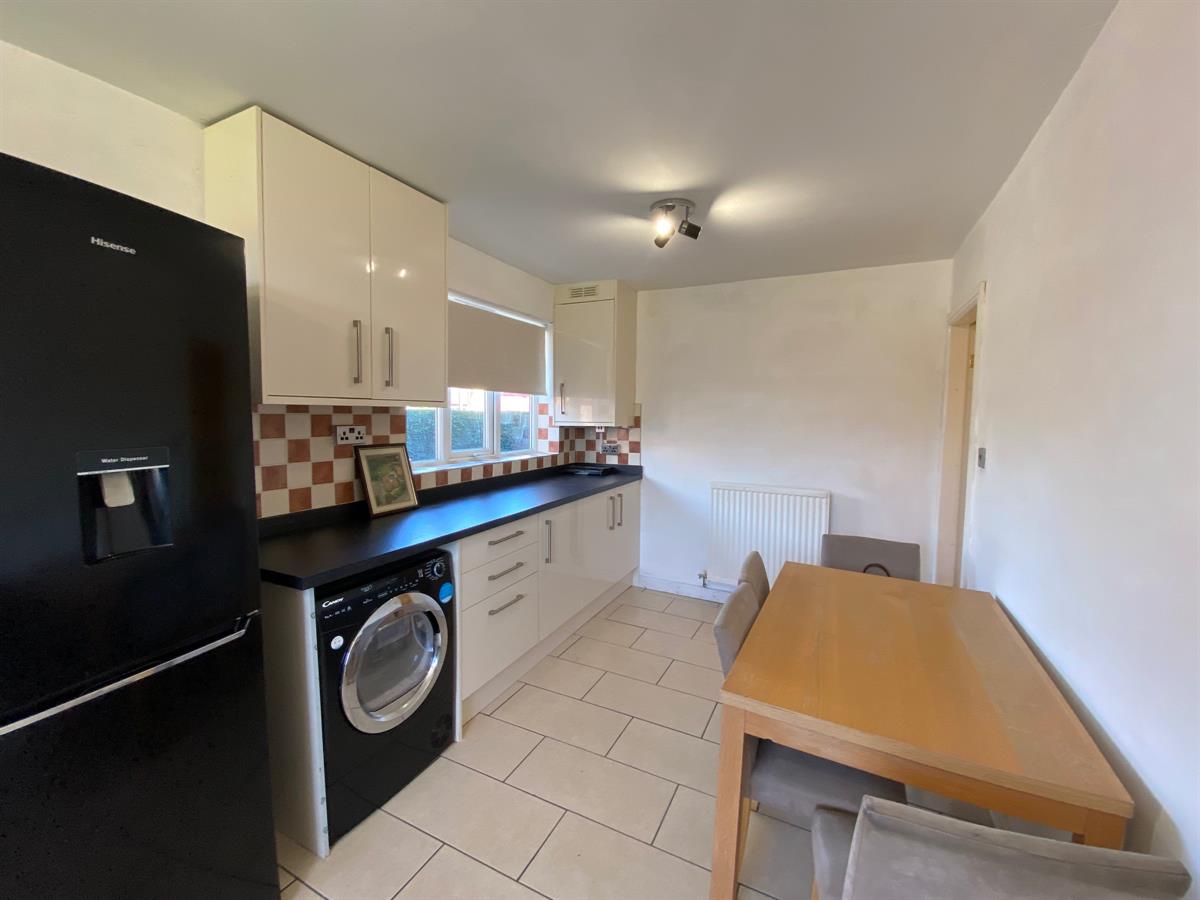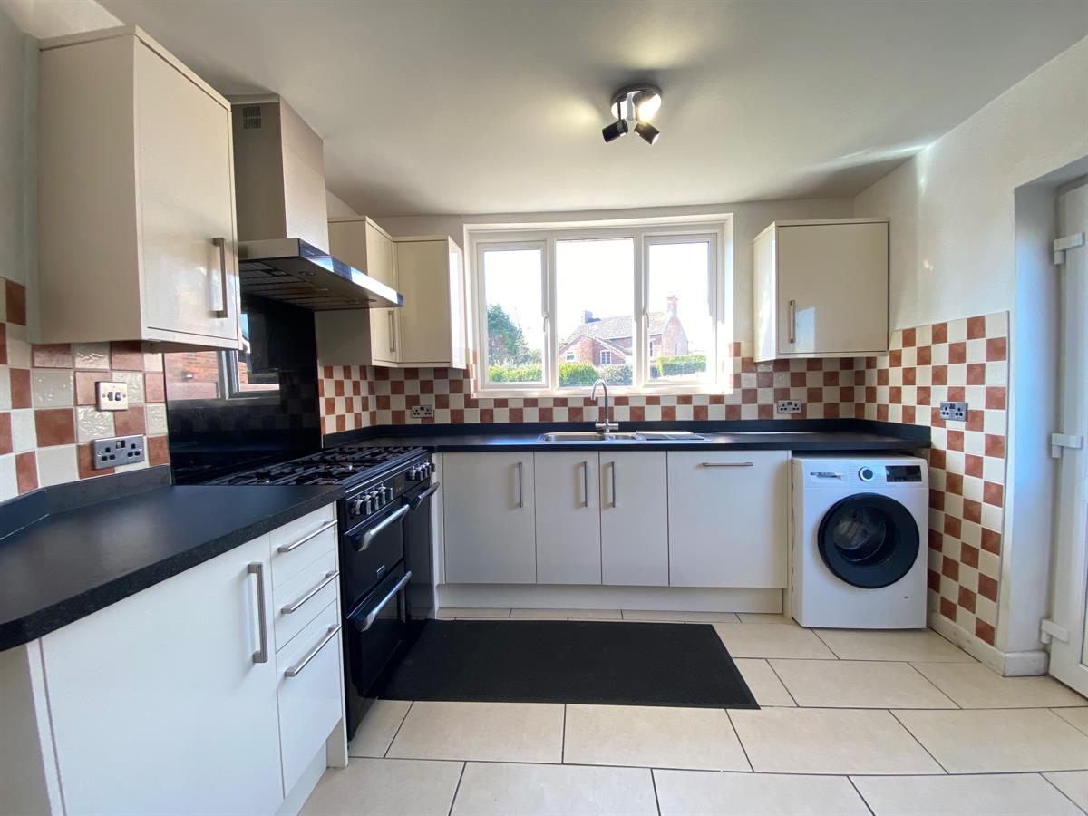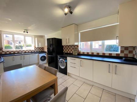 Really good sized dining kitchen, with uPvc double glazed windows to the rear elevation, uPvc double glazed panelled window to the side elevation, double glazed panelled door leading out to the side elevation, tiled flooring, double panelled radiator. The kitchen is fitted with a range of wall, base and drawer units with granite effect work surfaces over incorporating a one and a half bowl stainless steel single drainer sink unit with mixer tap and complimentary splash back tiling, five burner range cooker with double width extractor hood over, fridge freezer, space for washer, space for dryer, wall mounted central heating boiler concealed within a kitchen unit, integrated dishwasher.