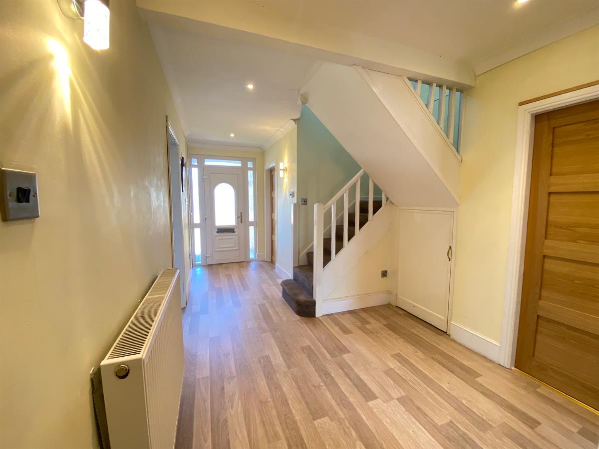 Really spacious reception hall having inset spot lighting, laminate flooring, double panelled radiator, under stairs storage cupboard, doors to all further rooms.