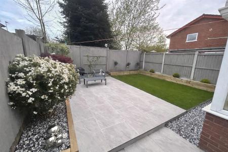 The front of the property is mainly laid to presscrete driveway with lawned area. A wooden gate provides access to the rear garden. The rear garden has recently been landscaped, is fenced on all boundaries having Indian Stone patio area providing ample rom for outside entertaining, raised sleeper borders which are well stocked with specimen trees and shrubs. Artificial turf and outside tap.