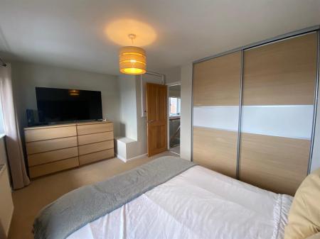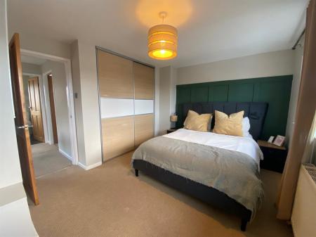 Generous double room with fitted wardrobes. Feature panelled wall. Two uPvc double glazed windows to front elevation. Radiator.