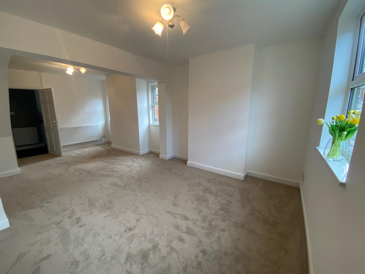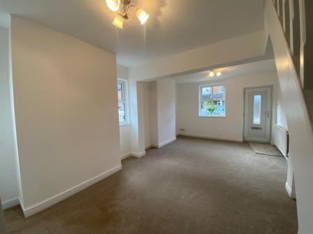 Dual aspect, spacious reception room with uPvc double glazed, sash effect windows to front and side elevations, radiators, wired smoke alarm and stairs rising to first floor landing. Painted panelled into: