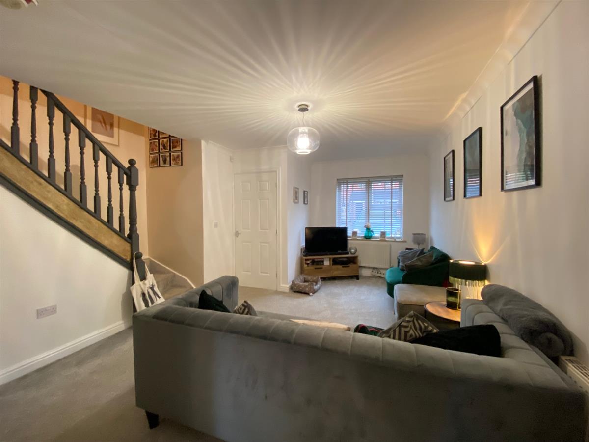 Good sized living room with a uPvc double glazed panelled window to the front elevation, two double panelled radiators, stairs rising to the first floor, under stairs storage cupboard, double doors leading into the dining kitchen.