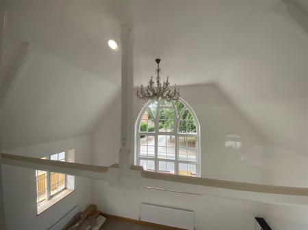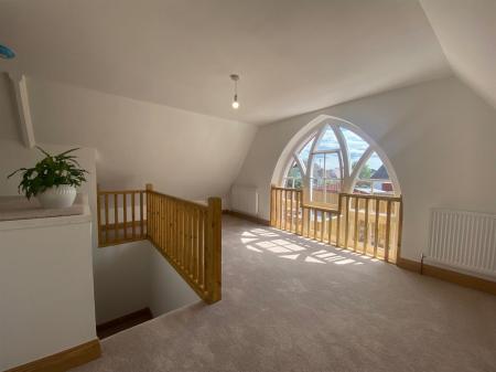 The front staircase opens onto a galleried landing which provides room for a study, playroom or library area. There is also an enclosed storage area with original decorative trusses and uPvc double glazed windows overlooking the sitting room. Radiator. Loft access point.