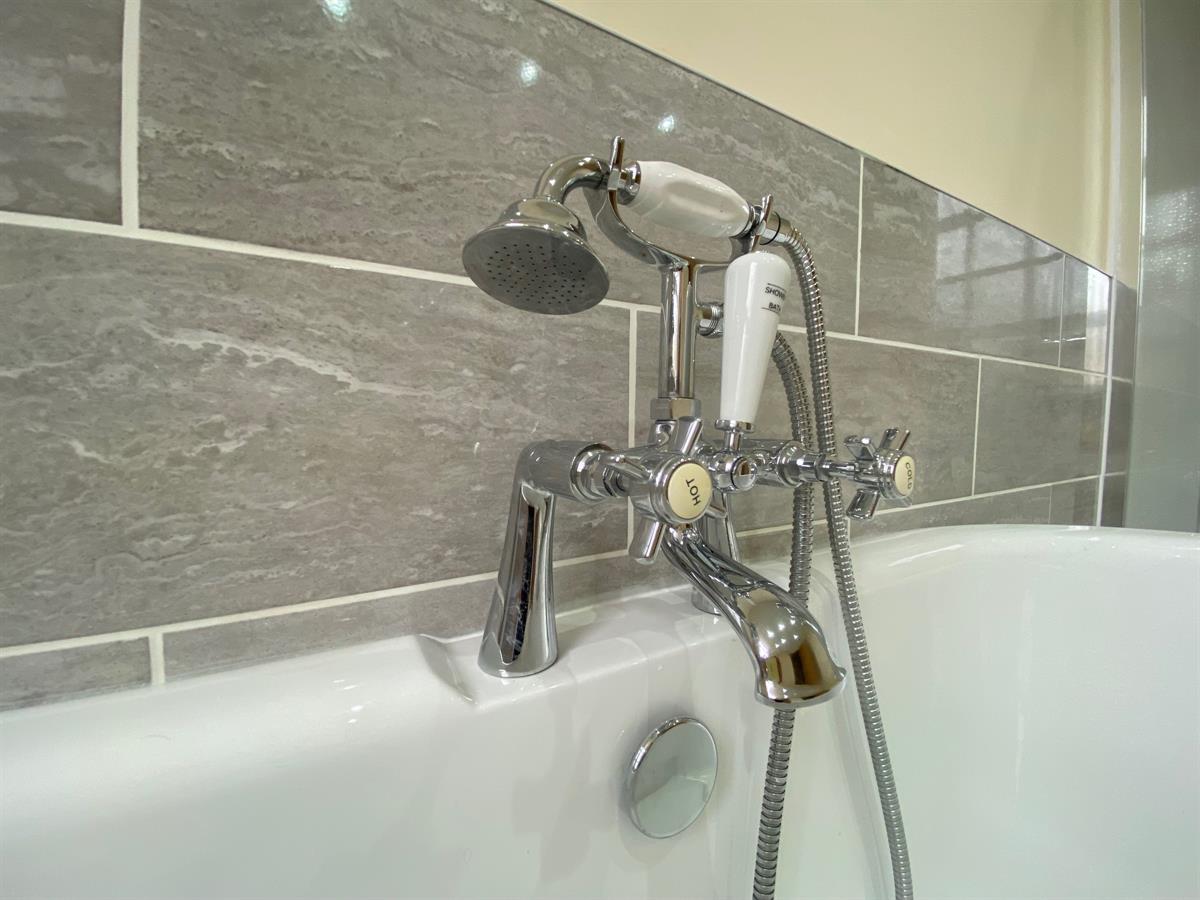 - Bathroom with roll top bath