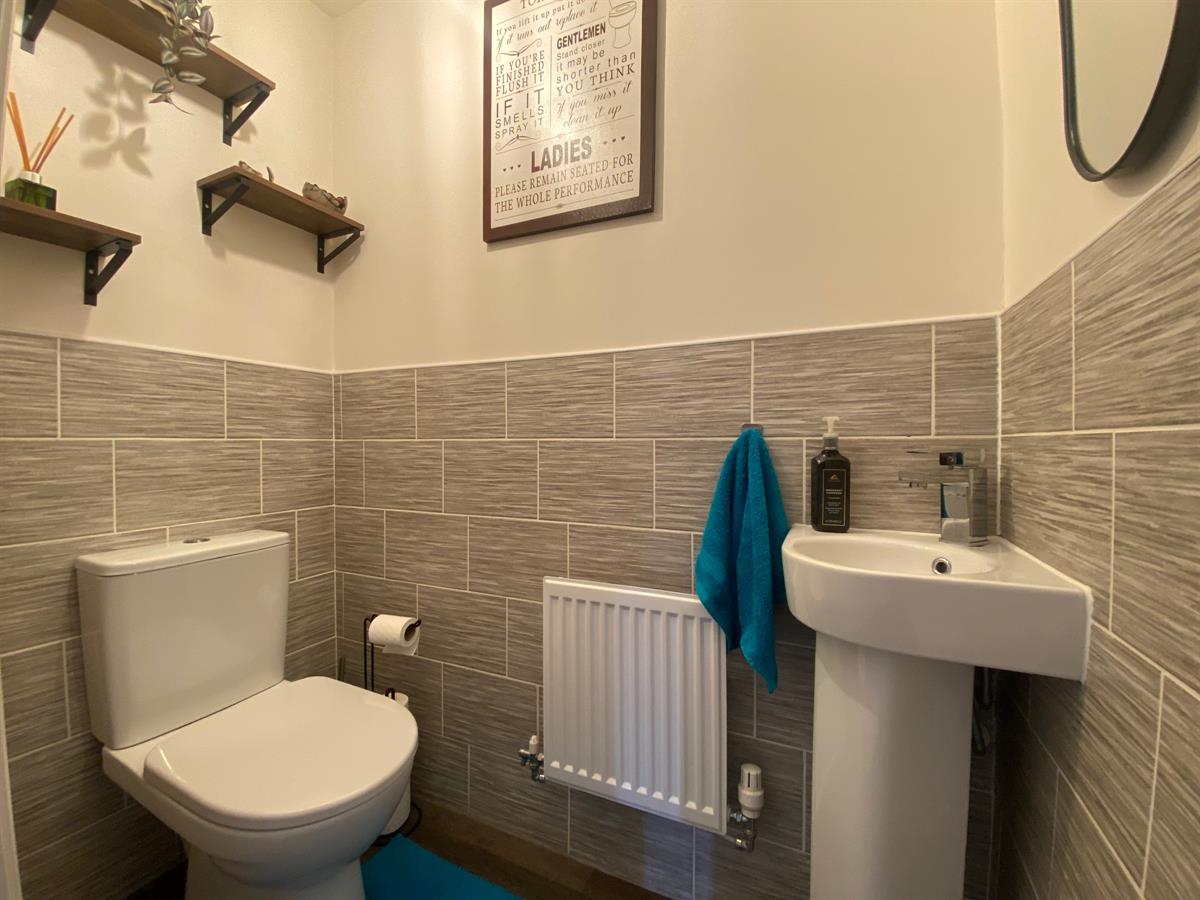 Fitted with a 2 piece suite comprising low level, push button W.C., pedestal wash hand basin with mixer tap and complimentary tiling, single radiator. Laminate flooring continued through from the Reception Hall.