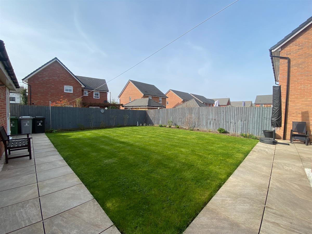 To the rear of the property there is an enclosed garden being, mainly laid to lawn, with borders housing a variety of shrubs and plants, a paved patio providing ample space for garden furniture, outside tap, access gate leading to the side of the property, and a courtesy door into the detached garage.