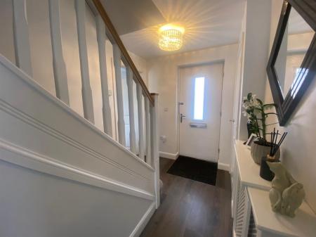 With stairs rising to the first floor landing and having single radiator concealed behind a decorative cover, understairs storage cupboard, laminate flooring. Door off to all further rooms.