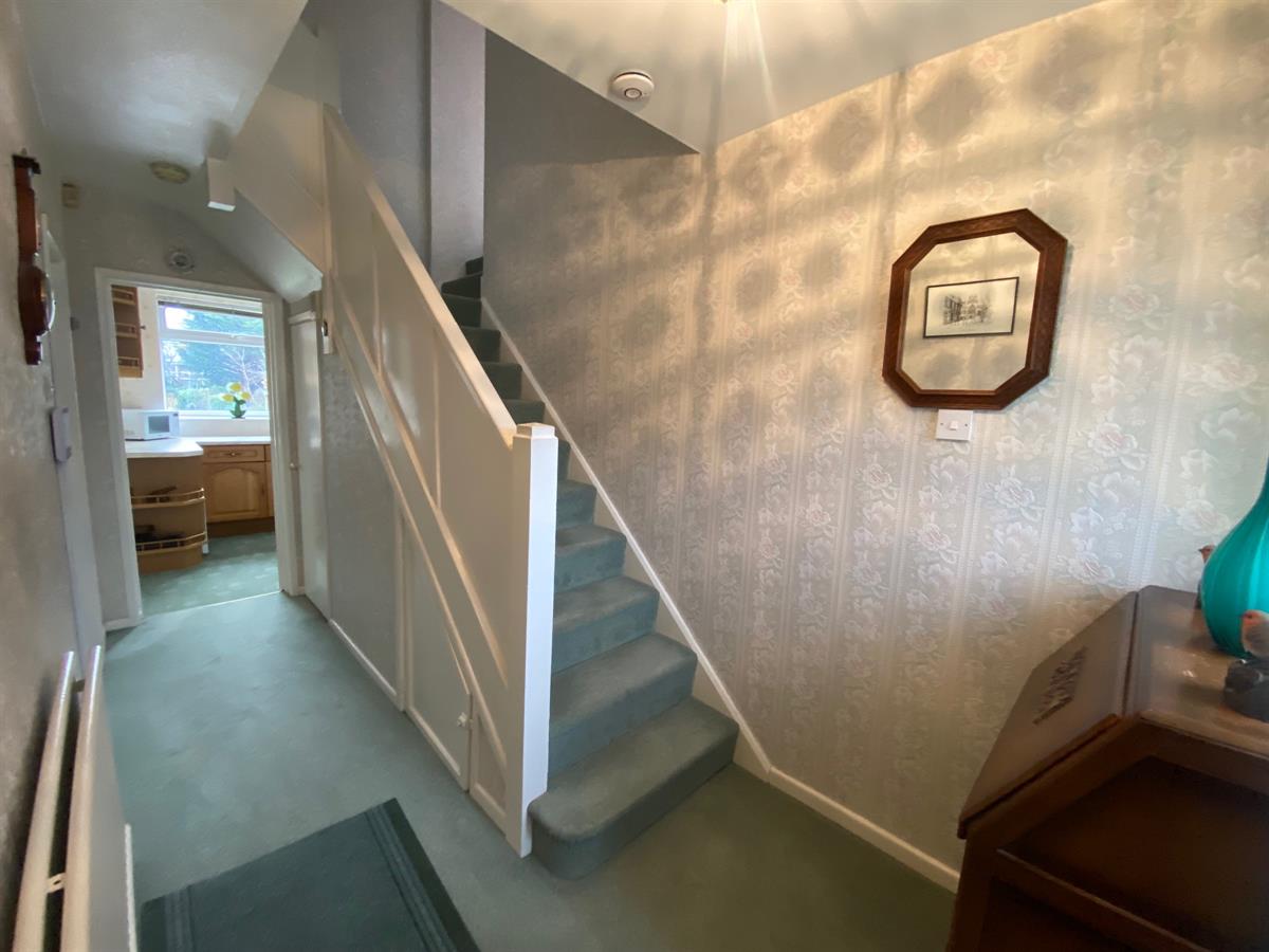 Having stairs rising to first floor landing with split staircase, painted doors off to kitchen and sitting room. Understairs storage cupboard, double panelled radiator.