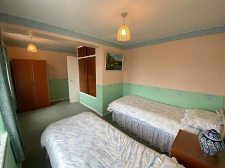 Another large double room having built in wardrobe with sliding doors and shelving, uPvc double glazed windows to front elevation. Radiator.