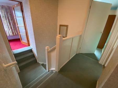 Rising to first floor landing with split staircase.