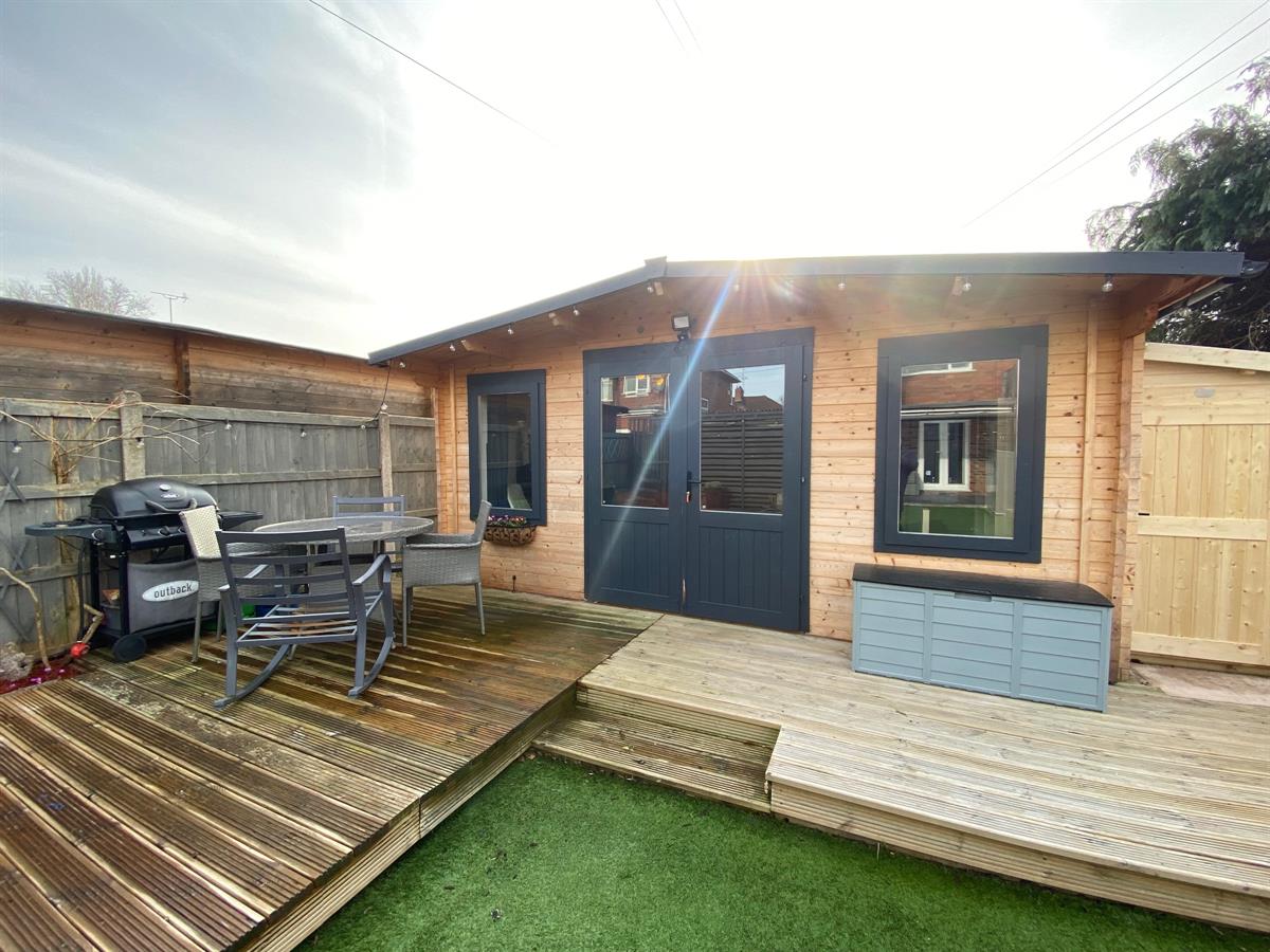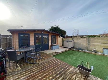 To the rear of the property there is a enclosed garden mainly laid to artificial lawn with gravel borders, covered seating area with ample space for garden furniture, a further raised decked seating area again, with ample space for garden furniture, leading to the Timber framed summerhouse and garden store. Double wooden gates leading out to the front of the property, outside lighting, outside tap, outside power points