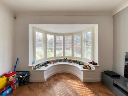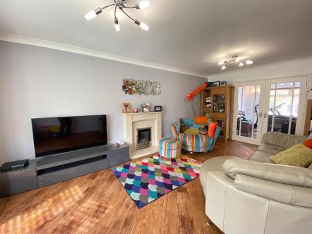 Generous Sitting Room having feature fire surround with marble slips and heath housing a coal effect, living flame gas fire and having chrome surround. uPvc double glazed, walk in bay window to front elevation fitted with Plantation shutters. Karndean flooring continued through from the Reception Hall. Double panelled radiator. Glazed double doors lead into: