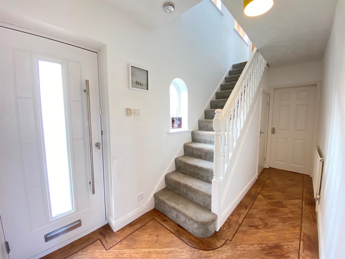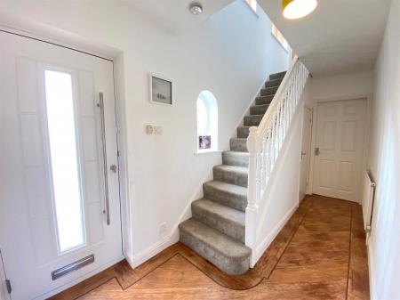Having stairs rising to the first floor landing, Karndean flooring throughout, single panelled radiator. Doors off to all further rooms and understairs storage cupboard.