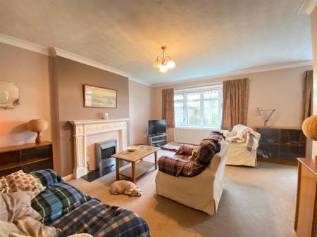 L-shaped lounge / dining room with two uPvc double glazed Georgian bar windows to the front elevation, two double panelled radiators, feature wooden fire surround housing an electric fire with additional gas point, coved ceiling.