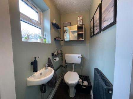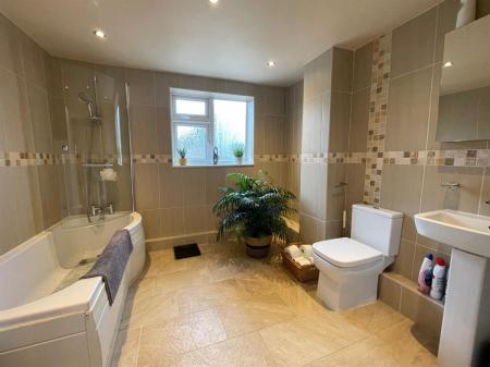 Fitted with a 2 piece suite comprising low level W.C., wall mounted wash hand basin. uPvc modesty glazed window to side elevation. Radiator.