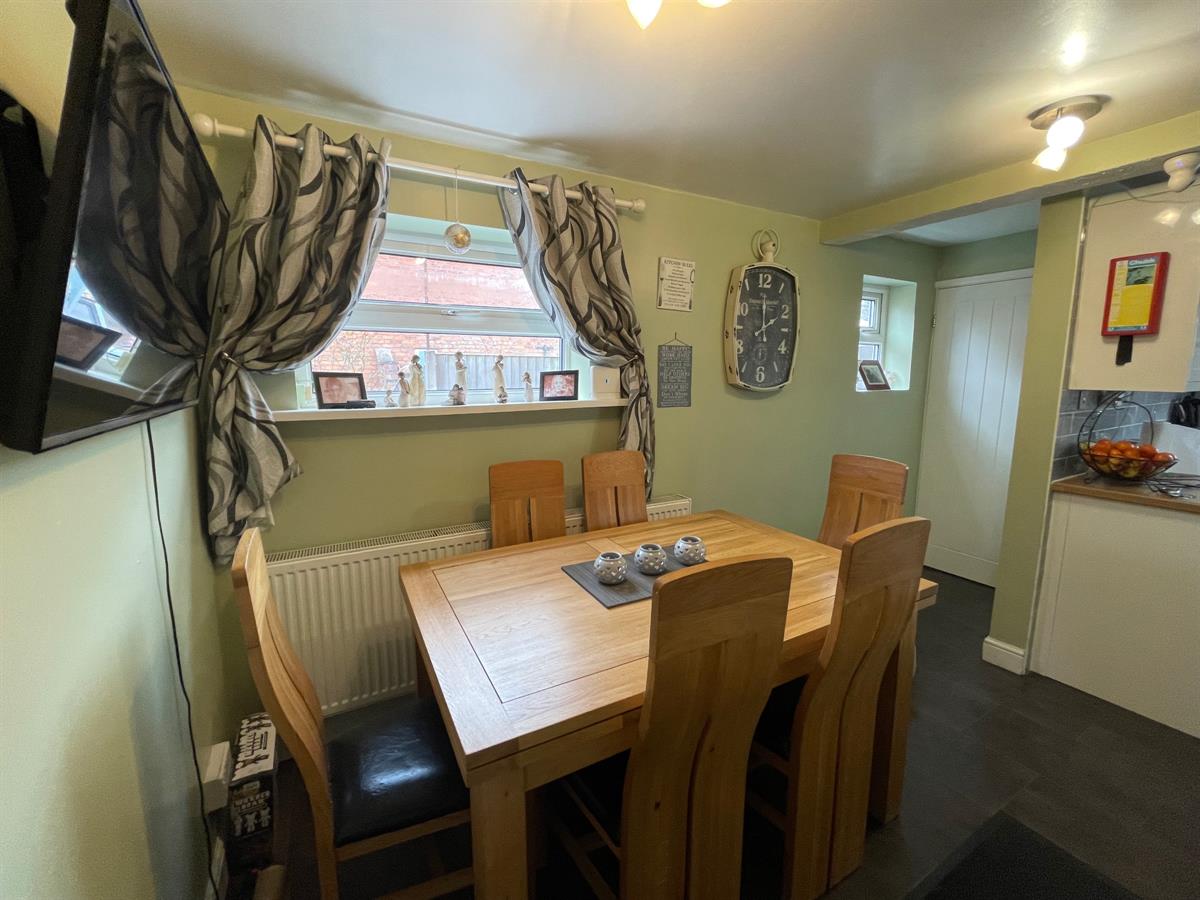 Having uPvc modesty glazed windows to front and side elevations, fitted cupboard, painted panelled door through to dining kitchen and opening into inner hallway with stairs rising to first floor landing and having painted panelled door into: