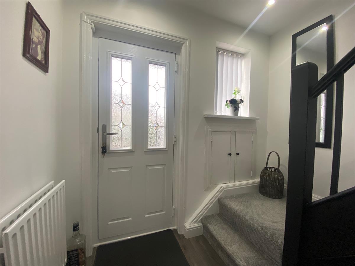 Approached over a paved and gravelled driveway leading to the covered porch and decoctive double glazed panelled composite entrance door giving access inro the reception hallway.