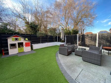 To the front of the property a tarmacadam driveway provides ample room for several vehicles and leads to the front door. Outside lighting. The rear garden has been beautifully landscaped with fenced boundaries all round, mainly laid to lawn and having resin bond patio area allowing ample room for garden furniture and outside entertaining. Raised gravel borders housing a variety of shrubs and plants. Timber shed. Outside tap. Access path to the side of the property leading to the front garden.