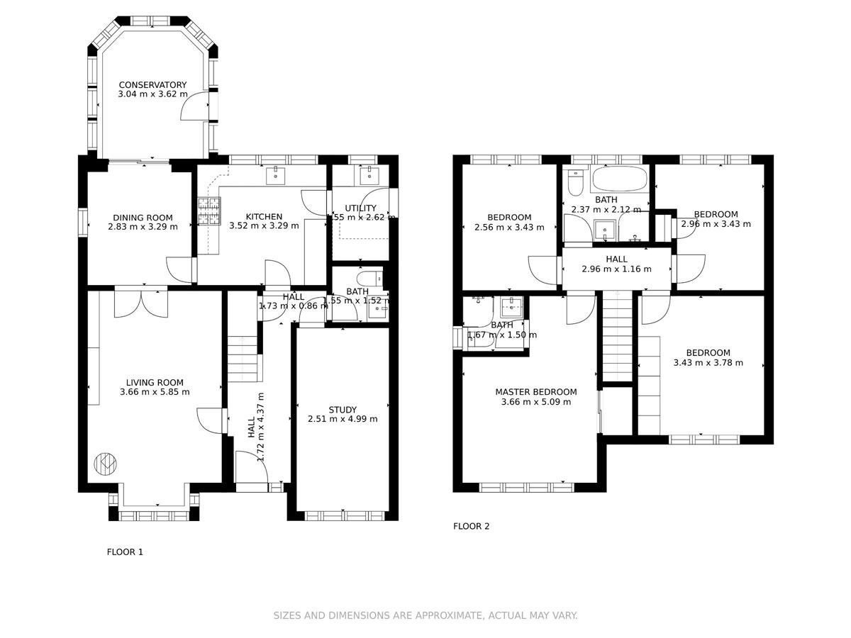 Bedroom 1 w: 3.66m x l: 5.09m (w: 12' x l: 16' 8")