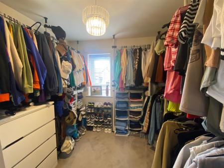 A good sized single bedroom, currently utilized as a walk in wardrobe with a uPvc double glazed panelled window to the front elevation, single radiator, built in storage cupboard.