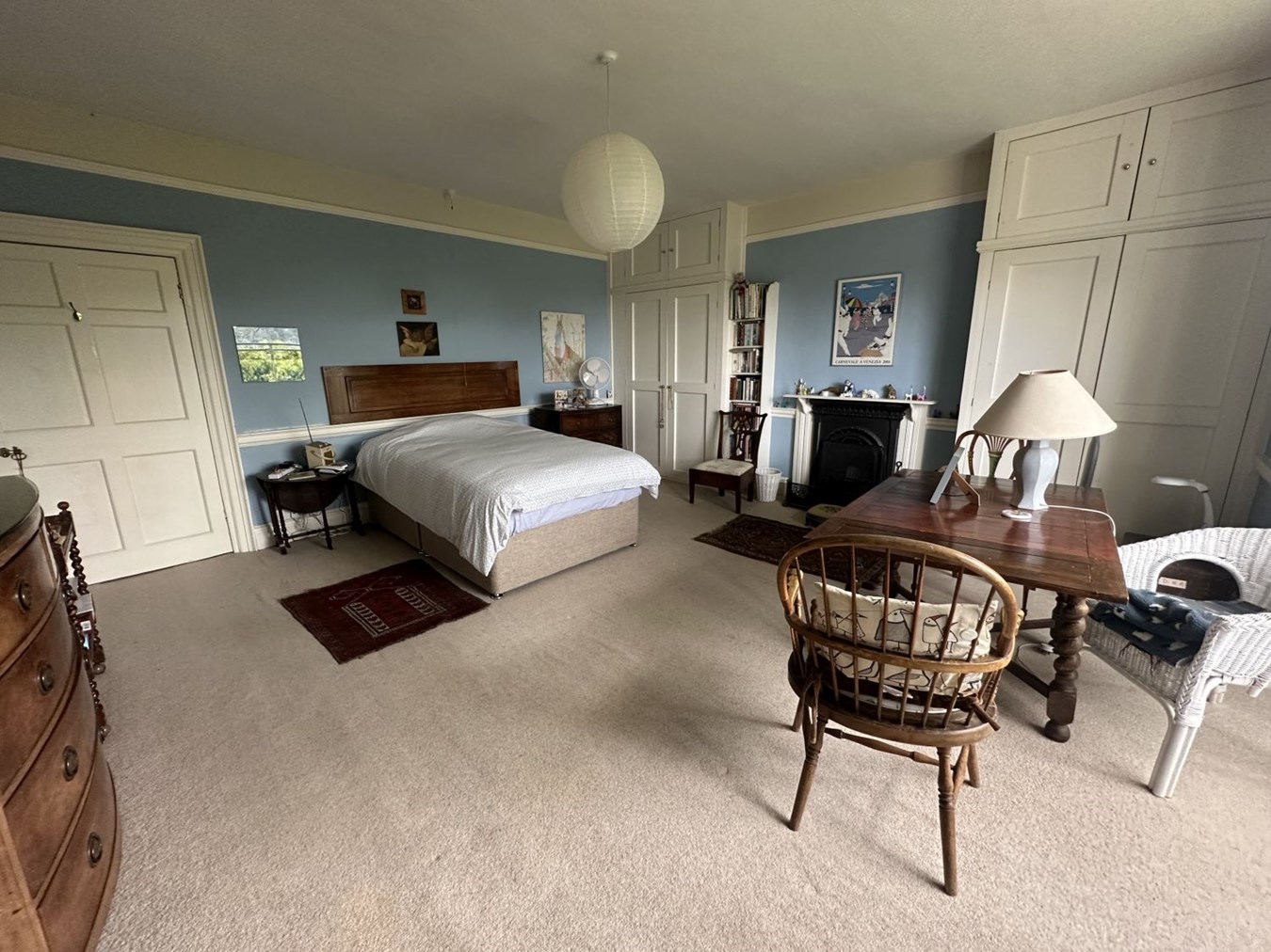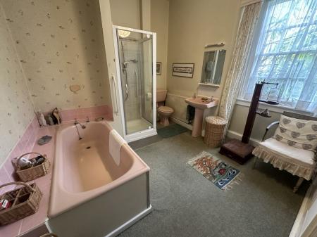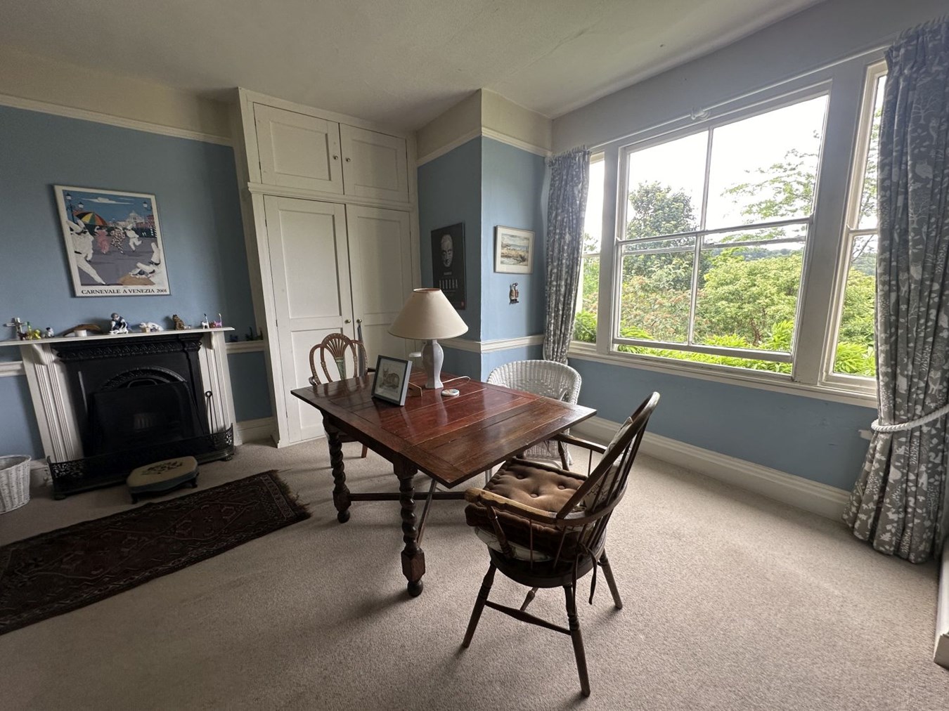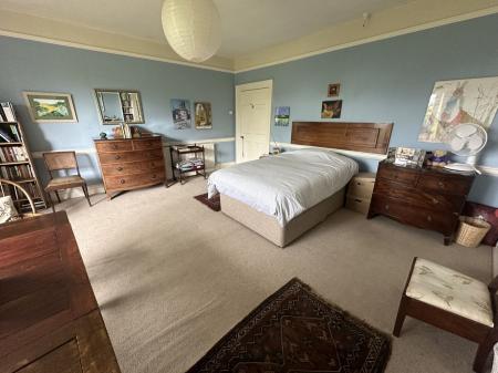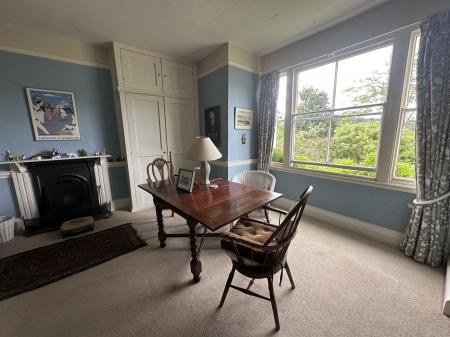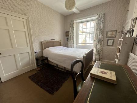 A beautiful, original wooden staircase leads to the first floor, where you will find four bedrooms. The rear two bedrooms are spacious, featuring built-in wardrobes and large sash windows with views of the Pen Cerrig Calch and Mynydd Llangatwg. This floor also has two bathrooms, one of which includes a bath and- separate shower. The fourth bedroom is currently used as a sitting room and features a glazed fanlight with barley twist glazing bars above the door, part of the Grade II* listing. The second floor offers three additional bedrooms, a store room and access to the attic. The property is rich with period features, including exposed beams, cornices, panelled doors, cast iron fireplaces and sash windows. There is also a good-sized cellar providing ample storage space.